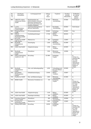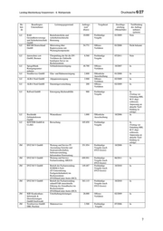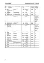 Drucksache 6/27 Landtag Mecklenburg-Vorpommern - 6. Wahlperiode Be- Beauftragtes Leistungsgegenstand Auftrags- Vergabeart Zuschlags- Tarifbindung hör- Unternehmen wert1 erteilung des Auftrag- de (Euro) (Monat/Jahr) nehmers (ja/nein) JM Bockholdt Glasreinigung 2.000 Öffentliche 01/2008 Ja Gebäudedienste Ausschreibung GmbH JM ALBA Nord GmbH Altpapierentsorgung 3.300 Offenes 02/2009 Ja Verfahren JM Gegenbauer Propertry Winterdienst 2.000 Öffentliche 10/2006 Ja Service GmbH Ausschreibung JM WSM Wach- und Bewachung 43.000 Freihändige Ja Sicherheitsgesell- Vergabe (Vertrag vor schaft Mecklenburg Gründung BBL mbH M-V abge- schlossen; Anpassung an aktuelle Tarif- bindung ist erfolgt) SM Jürgen Radlow Entwicklungs- und Pro- 960 Freihändige 05/2011 Nein grammierarbeiten sowie Vergabe Beratungs- und Betreuungs- leistungen zur länderspezi- fischen Anpassung des Software-AnalyseSystems Krankenhausdaten (ASK) zum Import und zur Auswertung der vom Institut für das Entgelt- system im Krankenhaus gGmbH (InEK) jährlich bereitgestellten DRG-Daten des Landes M-V SM BRSF Informations- Implementierung der neuen 11.679 Freihändige 01/2011 Nein technologie OHG Arbeitsstationen, Richtlinien, Vergabe Bundle Erstellung, Image Arbeitsstationen SM WISAG Unterhaltungsleistungen 22.400 Offenes 08/2010 Ja Gebäudereinigung Verfahren Brandenburg GmbH & Co. KG SM WISAG Lieferung 3.000 Offenes 08/2010 Ja Gebäudereinigung Verbrauchsmaterialien Verfahren Brandenburg GmbH & Co. KG SM Textilservice GmbH Mattenservice 200 Freihändige 12/2005 Ja DBL Parchim Vergabe SM Bockholdt Glasreinigung 2.300 Öffentliche 01/2008 Ja Gebäudedienste Ausschreibung GmbH SM ALBA Nord GmbH Altpapierentsorgung 3.400 Offenes 02/2009 Ja Verfahren SM Bockholdt Winterdienst 3.500 Öffentliche 10/2006 Ja Gebäudedienste Ausschreibung GmbH SM WSD in Mecklenburg Bewachung 32.300 Freihändige Ja GmbH & Co. KG Vergabe (Vertrag vor Gründung BBL M-V abge- schlossen; Anpassung an aktuelle Tarif- bindung ist erfolgt) SM Bockholdt Grün- und Außenanlagenpflege 6.200 Verhandlungs- 03/2009 Ja Gebäudedienste verfahren nach GmbH Offenen Verfahren BM BAD Betriebsärztliche und 8.000 Freihändige 09/2001 Nein Gesundheitsvorsorge arbeitssicherheits-technische Vergabe und Sicherheitstechnik Betreuung Personal BM GmbH 8