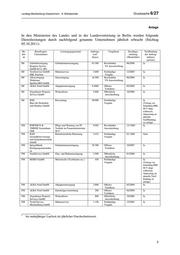 Drucksache 6/27 Landtag Mecklenburg-Vorpommern - 6. Wahlperiode Be- Beauftragtes Leistungsgegenstand Auftrags- Vergabeart Zuschlags- Tarifbindung hör- Unternehmen wert1 erteilung des Auftrag- de (Euro) (Monat/Jahr) nehmers (ja/nein) StK BAD Betriebsarzt 1.469 Freihändige 02/2000 Nein Gesundheitsvorsorge Vergabe und Sicherheitstechnik GmbH StK Spiegelblank Gebäudeinnenreinigung 27.000 Offenes 10/2007 Ja Reinigungsunter- Verfahren nehmen StK NordService GmbH Glas- und Rahmenreinigung 3.000 Öffentliche 01/2008 Ja Ausschreibung StK REIKO GmbH Mietwäsche 3.000 Freihändige Ja (Tischtücher etc.) Vergabe (Vertrag vor Gründung BBL M-V abge- schlossen; Anpassung an aktuelle Tarif- bindung ist erfolgt) StK ALBA Nord GmbH Altpapierentsorgung 3.700 Offenes 02/2009 Ja Verfahren StK Gegenbauer Property Winterdienst 1.000 Öffentliche 10/2006 Ja Services GmbH Ausschreibung StK BSD Büro für Bewachung 28.000 Freihändige Ja Sicherheit und Vergabe (Vertrag vor Detektei GmbH Gründung BBL M-V abge- schlossen; Anpassung an aktuelle Tarif- bindung ist erfolgt) LV MA Reinigung Anteil MV Öffentliche 01/2002 Ja Ber- Gebäudemanagement ca. 20.000 Ausschreibung lin GmbH LV Gebäude- und Pfortendienst Anteil M-V Öffentliche 06/2003 Ja Ber- Sicherheitsservice ca. 20.000 Ausschreibung lin GmbH LV BeSer GmbH Winterdienst Anteil M-V Freihändige 09/2010 Nein Ber- ca. 1.100 Vergabe lin LV GO! Express & Kurierdienst ca. 8.500 Freihändige 08/2003 Nein Ber- Logistik GmbH Vergabe lin LV Gebäude- und Grünflächenpflege Anteil M-V Freihändige 04/2008 Ja Ber- Grünanlagenservice ca. 1.200 Vergabe lin GmbH LV Aufzugstechnik Berlin Wartung 1.600 Freihändige 06/2002 Ja Ber- GmbH Personenaufzug/Speiseaufzug Vergabe lin LV Aufzugstechnik Berlin Wartung Hubtreppe Anteil M-V Freihändige 02/2009 Ja Ber- GmbH 300 Vergabe lin LV Aufzugstechnik Berlin Wartung Lastenaufzug Anteil M-V Freihändige 06/2002 Ja Ber- GmbH 300 Vergabe lin 10