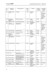 Landtag Mecklenburg-Vorpommern - 6. Wahlperiode Drucksache 6/27 Be- Beauftragtes Leistungsgegenstand Auftrags- Vergabeart Zuschlags- Tarifbindung hör- Unternehmen wert1 erteilung des Auftrag- de (Euro) (Monat/Jahr) nehmers (ja/nein) LU BAD Betriebsärztliche und 10.000 Freihändige 01/2009 Nein Gesundheitsvorsorge sicherheitstechnische Vergabe und Sicherheitstechnik Betreuung GmbH LU RICOH Deutschland Mietvertrag über 54.771 Offenes 01/2008 Nicht bekannt GmbH Kopiersysteme mit Verfahren Wartungskomponente LU datenschutz cert Überprüfung der für die DV- 8.568 Freihändige 07/2011 Nein GmbH, Bremen Verfahren der Zahlstelle Vergabe benötigten Server im Rechenzentrum LU Spiegelblank Gebäudeinnenreinigung 48.700 Offenes 10/2007 Ja Reinigungsunter- Verfahren nehmen LU NordService GmbH Glas- und Rahmenreinigung 2.800 Öffentliche 01/2008 Ja Ausschreibung LU ALBA Nord GmbH Altpapierentsorgung 2.900 Offenes 02/2009 Ja Verfahren LU ALBA Nord GmbH Datenträgervernichtung 200 Offenes 02/2009 Ja Verfahren LU ReFood GmbH Entsorgung Küchenabfälle 900 Freihändige Ja Vergabe (Vertrag vor Gründung BBL M-V abge- schlossen; Anpassung an aktuelle Tarif- bindung ist erfolgt) LU Bockholdt Winterdienst 1.000 Öffentliche 10/2006 Ja Gebäudedienste Ausschreibung GmbH LU KÖTTER GmbH & Bewachung 105.850 Freihändige Ja Co.KG Vergabe (Vertrag vor Gründung BBL M-V abge- schlossen; Anpassung an aktuelle Tarif- bindung ist erfolgt) JM DVZ M-V GmbH Wartung und Service IT- 351.954 Freihändige 10/2008 Ja Ausstattung Gerichte und Vergabe (nach Staatsanwaltschaften, DVZ-Gesetz) Softwareverteilung, Infrastruktur Fernwartung JM DVZ M-V GmbH Wartung und Service 699.991 Freihändige 06/2011 Ja Fachanwendung ARGUS Vergabe (nach DVZ-Gesetz) JM DVZ M-V GmbH Betrieb der Fachanwendung 149.487 Freihändige 10/2010 Ja EUREKA-Fach Vergabe (nach (IT-Unterstützung DVZ-Gesetz) Fachgerichtsbarkeit) im Rechenzentrum DVZ/DataCenter Justiz (DCJ) JM DVZ M-V GmbH Betrieb der Fachanwendung 363.115 Freihändige 10/2010 Ja solumSTAR (maschinelle Vergabe (nach Führung des Grundbuchs) im DVZ-Gesetz) Rechenzentrum DVZ/DataCenter Justiz (DCJ) JM KID Krankenhaus Unterhaltungsleistungen 28.000 Offenes 02/2009 Ja Informatik & Verfahren Dienstleistungen GmbH Greifswald JM Textilservice GmbH Mattenservice 2.500 Freihändige 07/2006 Ja DBL Parchim Vergabe 7