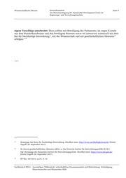Wissenschaftliche Dienste Kurzinformation Seite 4 Zur Berücksichtigung der Sustainable Development Goals im Regierungs- und Verwaltungshandeln eigene Vorschläge unterbreitet. Diese sollten mit Beteiligung des Parlaments, im engen Kontakt mit dem Bundeskanzleramt und den beteiligten Ressorts sowie im intensiven Austausch mit dem Rat für Nachhaltige Entwicklung , mit der Wissenschaft und mit gesellschaftlichen Akteuren 12 13 erfolgen.“ 14 *** 12 Homepage des Rates für Nachhaltige Entwicklung. Abrufbar unter: http://www.nachhaltigkeitsrat.de/ (letzter Zugriff. 28. September 2017). 13 Zu diesen gesellschaftlichen Akteuren zählt u.a. das Deutsche Institut für Entwicklungspolitik (D.I.E.). Vgl. Homepage des Deutschen Instituts für Entwicklungspolitik. Abrufbar unter: https://www.die-gdi.de/ (letzter Zugriff. 28. September 2017). 14 BT-Drs. 18/12511, a.a.O., S. 15. Fachbereich WD 2 Auswärtiges, Völkerrecht, wirtschaftliche Zusammenarbeit und Entwicklung, Verteidigung, Menschenrechte und Humanitäre Hilfe