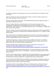 Wissenschaftliche Dienste Ausarbeitung Seite 62 WD 10 - 3000 - 095/12 the Belgian Presidency of the European Union in the second half of 2010. The Hague: T.M.C. Asser Press. SIEKMANN, Robert C.R.; SOEK, Janwillem (Hrsg.) (2012). Lex Sportiva: What is Sports Law? 2012. Aufl., The Hague: T.M.C. Asser Press. SINGLER, Andreas (2012). Autonomie- und Nützlichkeitsillusionen beim Doping im Sport, in: TAB-Brief, 40 (Februar 2012) 21-27. SINGLER, Andreas; TREUTLEIN, Gerhard (2009). Vom Verlust des Vertrauens in den Leistungssport: Möglichkeiten der Dopingprävention für eine Kurskorrektur. In: N ICKEL, Rüdiger; ROUS, Theo (Hrsg.). Das Anti-Doping-Handbuch. Band 1: Grundlagen (2. Auflage) (266- 281). Aachen: Meyer & Meyer. SINGLER, Andreas; TREUTLEIN, Gerhard (2010). Doping im Spitzensport. Sportwissenschaftliche Analysen zur nationalen und internationalen Leistungsentwicklung Teil 1 (5. Auflage). Aachen: Meyer & Meyer. SKILLE, Eivind; HANSTAD, Dag Vidar; TJERNSBEKK, Per Arne (2011). The Institutionalization of National Anti-doping work After Introduction of the World Anti-Doping-Code. International Journal of Applied Sport Sciences, 23 (2) 441-464. SPARVERO, Emily; CHALIP, Laurence; GREEN, Christine (2008). United States. In: Houlihan, Barrie; Green, Mick (Hrsg.): Comparative elite sport development: systems, structures and public policy (242-271). Oxford: Butterworth-Heinemann. SPINDLER, Barbara (2012). Die Organisation des Sports in Österreich, in Europa und International. Wien: BSO; abrufbar auch im Internet unter www.bso.or.at/fileadmin/Inhalte/Dokumente/BSO-Skriptum_Organisation_des_Sports.pdf. SPITZ, Ulrike (2009). Die Nationale Doping Agentur. In: NICKEL, Rüdiger; ROUS, Theo (Hrsg.). Das Anti-Doping-Handbuch. Band 1: Grundlagen (2., überarbeitete Auflage) (80-86). Aachen: Meyer & Meyer. SPITZER, Giselher (2004). Doping in der DDR. Ein historischer Überblick zu einer konspirativen Praxis. Genese – Verantwortung – Gefahren. Wissenschaftliche Berichte und Materialien des Bundesinstituts für Sportwissenschaft (3. Auflage). Köln: Sport und Buch Strauß. SPITZER, Giselher (Ed.) (2006). Doping and Doping Control in Europe. Performance enhancing drugs, elite sports and leisure time sport in Denmark, Great Britain, East and West Germany, Poland, France Italy. Aachen. Meyer & Meyer Sport. STEINER, Jason (2011). Genetic Doping: The Lance Armstrong Case as a Preview for Future Regulations. Sports and Entertainment Law Journal, 1 (2) 41-92; zugleich abrufbar unter www.sportsandentertainmentlawblog.com/wp-content/uploads/2011/12/SELJ_Vol_1_Issue_22. pdf.