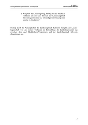 Landtag Mecklenburg-Vorpommern - 7. Wahlperiode Drucksache 7/2720 5. Wie plant die Landesregierung, künftig mit der Fläche zu verfahren, um eine aus der Sicht der Landeshauptstadt Schwerin gewünschte und notwendige Entwicklung nicht unnötig zu blockieren? Bedingt durch die Planungshoheit der Landeshauptstadt Schwerin bezüglich der Landes- liegenschaft wird das weitere Verfahren zur Entwicklung der Landesliegenschaft eng zwischen dem Land Mecklenburg-Vorpommern und der Landeshauptstadt Schwerin abzustimmen sein. 3