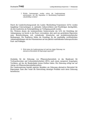 Drucksache 7/442 Landtag Mecklenburg-Vorpommern - 7. Wahlperiode 2. Welche Anstrengungen werden seitens der Landesregierung unternommen, um den Rapsanbau in Mecklenburg-Vorpommern zukunftsfähig zu halten? Durch die Landesforschungsanstalt des Landes Mecklenburg-Vorpommern (LFA) werden langjährige Untersuchungen zu optimalen Anbauverfahren und Fruchtfolgen durchgeführt, die den Landwirten als Fachempfehlung zur Verfügung gestellt werden. Des Weiteren dienen die kontinuierlichen Sortenversuche des LFA der Ermittlung der Anbaueignung von bereits in der Praxis verwendeten, aber auch neu gezüchteten Rapssorten unter Berücksichtigung sich verändernder klimatischer und produktionstechnischer Bedingungen. Die Ergebnisse bilden die Grundlage für die regelmäßig veröffentlichten Anbauempfehlungen und die Präsentationen auf den jährlich stattfindenden kulturspezifischen Fach- und Feldtagen. 3. Wird seitens der Landesregierung im Land eine zügige Zulassung von alternativen Beizmitteln für Rapssaatgut angestrebt? Zuständig für die Zulassung von Pflanzenschutzmitteln ist das Bundesamt für Verbraucherschutz und Lebensmittelsicherheit (BVL) nach einem europaweit festgelegten Verfahren, auf das die Bundesländer keinen Einfluss haben. Die Zulassung erfolgt nur auf Antrag von Pflanzenschutzmittelherstellern. Die Landesregierung begrüßt jegliches Bemühen um Zulassung alternativer Beizmittel für Rapssaatgut, kann aber weder die Entwicklung derartiger Produkte noch deren Zulassung beeinflussen. 2