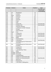 Landtag Mecklenburg-Vorpommern - 6. Wahlperiode Drucksache 6/3110 Schulamt Schulart Schule Funktion keine Bewerber und derzeit keine Ausschreibung GW GS Brandshagen SL GW Gy Löcknitz SL GW RegS Ducherow SL GW FöL Grimmen sSL GW FöL Sassnitz sSL GW FöL Stralsund sSL GW GS Gager sSL GW GS Garz sSL GW GS Görmin KG sSL keine Bewerber GW GS Schlatkow KG sSL keine Bewerber GW GS Stralsund Andershof sSL GW GS „Ferdinand von Schill“ Stralsund sSL GW GS Wolgast sSL GW Gy Hansa Stralsund sSL GW RegS Garz sSL NB GS Altenhof KG SL keine Bewerber NB GS Groß Plasten SL keine Bewerber NB GS Kargow KG SL keine Bewerber NB KGS Röbel SL NB Agy Neubrandenburg sSL NB FöG Altentreptow sSL keine Bewerber NB FöL Sonderpädagogisches Förderzentrum sSL Neustrelitz NB FöL Sonderpädagogisches Förderzentrum sSL keine Bewerber Friedland NB GS Altenhof KG sSL keine Bewerber NB GS Groß Plasten sSL keine Bewerber NB GS „Am Papenberg“ Waren sSL NB KGS Röbel sSL NB RegS/GS Blankensee sSL NB RegS/GS Wesenberg sSL NB Sgy Neubrandenburg sSL RO GS Diekhof Am Schmooksberg KG SL RO GS Diekhof Am Schmooksberg KG sSL keine Bewerber RO GS Bentwisch sSL RO GS Dummerstorf sSL RO GS „Fritz Reuter“ Kühlungsborn sSL 3