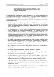 Landtag Mecklenburg-Vorpommern - 6. Wahlperiode Drucksache 6/3110 4. Welche Maßnahmen ergreift das Ministerium für Bildung, Wissen- schaft und Kultur, um die Anzahl der kommissarisch besetzen Funk- tionsstellen dauerhaft zu senken? In der Beantwortung der Frage 2 der Kleinen Anfrage 6/1451 („In welcher Weise beabsichtigt die Landesregierung, die offenen Funktionsstellen in Kürze durch welche Maßnahmen zu besetzen?“) wurden fünf Maßnahmen zur Sicherstellung der Besetzung von Leitungsstellen benannt. Zusammenfassend wird hier der aktuelle Stand der Umsetzung dieser und weiterer Maßnahmen dargestellt: - Die Verwaltungsvorschrift „Regelung zum Verfahren bei der Besetzung der Stellen der Schulleiterinnen und Schulleiter und deren Vertreter (Leitungsstellen) an öffentlichen Schulen des Landes Mecklenburg-Vorpommern“ wurde neu gefasst und ist im Februar 2014 veröffentlicht worden. - Die Verwaltungsvorschrift über die Dienstliche Beurteilung der Lehrkräfte an öffentlichen Schulen ist geändert. Die Änderungsvorschriften vom 17.01.2014 und 26.02.2014 sind veröffentlicht. Mit der zweiten Änderung der Verwaltungsvorschrift wird für die dienst- liche Beurteilung der Lehrkräfte, Schulleiterinnen und Schulleiter sowie stellvertretenden Schulleiterinnen und Schulleiter sowohl für die Beurteilenden als auch die Beurteilten der Aufwand deutlich reduziert mit der Folge, dass sich die Beurteilung deutlicher auf die für die Leitung erforderlichen Kompetenzen konzentrieren kann. - Seit Januar 2014 werden die Leitungsstellen über eine neue und zeitgemäße Form (Homepage des Bildungsministeriums) ausgeschrieben. Darüber hinaus ist beabsichtigt, die Ausschreibung von Schulleitungsstellen perspektivisch in der online-Stellenbörse auf dem Bildungsserver zu platzieren. - Die Ausschreibung von Leitungsstellen erfolgt ohne die Voraussetzung einer Mindestein- gruppierung. - Die Öffnung der Ausschreibungen für zusätzliche Lehrämter ist umgesetzt. - Ab dem 01.08.2014 richten sich die Ausschreibungen von Leitungsstellen auch an Bewerberinnen und Bewerber außerhalb des Landesdienstes. - Langfristig bekannte, wegen Renteneintritts vakant werdende Stellen wurden bereits ausgeschrieben, um die Übergangszeit bis zum Wirksamwerden des umgestalteten neuen Besetzungsverfahrens ohne Zeitverlust für die einzelnen Stellenbesetzungen zu nutzen. - In Abstimmung mit den zuständigen Interessenvertretungen wurde ein schulamtsübergrei- fendes und somit einheitliches Vorgehen bei der vorübergehenden Besetzung von Leitungsstellen geregelt. - In Abstimmung mit den zuständigen Interessenvertretungen wurde eine Regelung zur Besetzung besonders lange währender Einzelverfahren getroffen. 5