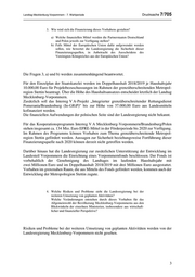 Landtag Mecklenburg-Vorpommern - 7. Wahlperiode Drucksache 7/705 3. Wie wird sich die Finanzierung dieses Vorhabens gestalten? a) Welche finanziellen Mittel werden die Partnerstaaten Deutschland und Polen jeweils zur Verfügung stellen? b) Falls Mittel der Europäischen Union dafür aufgewendet werden sollen, wie bewertet die Landesregierung die Sicherheit dieser Finanzierungsquellen, in Anbetracht des Ausscheidens des Vereinigten Königreiches aus der Europäischen Union? Die Fragen 3, a) und b) werden zusammenhängend beantwortet. Für den Einzelplan der Staatskanzlei werden im Doppelhaushalt 2018/2019 je Haushaltsjahr 10.000,00 Euro für Projektbezuschussungen im Rahmen der grenzüberschreitenden Metropol- region Stettin beantragt. Über die Höhe des Haushaltsansatzes entscheidet letztlich der Landtag Mecklenburg-Vorpommern. Zusätzlich soll das Interreg V A-Projekt „Integrierter grenzüberschreitender Rettungsdienst Pomerania/Brandenburg (In-GRiP)“ bis zur Höhe von 37.000,00 Euro aus Landesmitteln kofinanziert werden. Die finanziellen Aufwendungen der polnischen Seite sind der Landesregierung nicht bekannt. Für das Kooperationsprogramm Interreg V A Mecklenburg-Vorpommern/Brandenburg/Polen stehen insgesamt ca. 134 Mio. Euro EFRE-Mittel in der Förderperiode bis 2020 zur Verfügung. Im Rahmen des Programms können Vorhaben zum Thema grenzüberschreitende Metropol- region Stettin gefördert werden. Aussagen zur Sicherheit beziehungsweise Fortführung dieser Finanzierungsquelle nach 2020 können derzeit nicht getroffen werden. Darüber hinaus hat die Landesregierung zur zusätzlichen Unterstützung der Entwicklung im Landesteil Vorpommern die Einrichtung eines Vorpommernfonds beschlossen. Der Fonds ist vorbehaltlich der Genehmigung des Landtages im laufenden Haushaltsjahr mit zwei Millionen Euro und im Doppelhaushalt 2018/2019 mit drei Millionen Euro ausgestattet. Vorhaben im grenznahen Raum, die aus Mitteln des Fonds gefördert werden, kommen auch der Entwicklung der Metropolregion Stettin zugute. 4. Welche Risiken und Probleme sieht die Landesregierung bei der weiteren Umsetzung von geplanten Aktivitäten? Welche Veränderungen entstehen durch dieses Vorhaben für das Allgemeinwohl der Bevölkerung Mecklenburg-Vorpommerns aus den Blickwinkeln der einzelnen Ministerien, insbesondere aus wirtschaft- licher und finanzieller Perspektive? Risiken und Probleme bei der weiteren Umsetzung von geplanten Aktivitäten werden von der Landesregierung Mecklenburg-Vorpommern nicht gesehen. 3