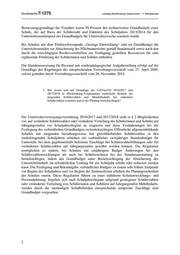 Drucksache 7/1275 Landtag Mecklenburg-Vorpommern - 7. Wahlperiode Bemessungsgrundlage der Vorjahre waren 99 Prozent des rechnerischen Grundbedarfs einer Schule, der auf Basis der Schülerzahl und Faktoren des Schuljahres 2013/2014 für den Unterrichtsstundenpool des Grundbudgets für Unterrichtszwecke ermittelt wurde. Bei Schulen mit dem Förderschwerpunkt „Geistige Entwicklung“ sind im Grundbudget die Unterrichtsstunden zur Absicherung des Pflichtunterrichts gemäß Stundentafel sowie nach den durch die einschlägigen Rechtsvorschriften zur Verfügung gestellten Ressourcen für eine ergänzende Förderung der Schülerinnen und Schüler enthalten. Die Stundenzuweisung für Personal mit sonderpädagogischer Aufgabestellung erfolgt auf der Grundlage der Regelungen der entsprechenden Verwaltungsvorschrift vom 27. April 2009, zuletzt geändert durch Verwaltungsvorschrift vom 26. November 2014. 2. Wie lassen sich auf Grundlage der UntVersVO 2016/2017 und 2017/2018 in Mecklenburg-Vorpommern zusätzliche Bedarfe bei steigenden Schülerzahlen und Minderbedarfe bei sinkenden Schülerzahlen ermitteln und in der Planung berücksichtigen? Die Unterrichtsversorgungsverordnung 2016/2017 und 2017/2018 sieht in § 2 Möglichkeiten vor, auf veränderte Schülerzahlen oder veränderte Verteilung der Schülerinnen und Schüler auf Jahrgangsstufen vor Schuljahresbeginn zu reagieren und diese Veränderungen bei der Festlegung des verbindlichen Grundbudgets zu berücksichtigen. Öffentliche allgemeinbildende Schulen mit steigenden beziehungsweise mit gleichbleibenden Schülerzahlen in den zurückliegenden Schuljahren erhielten ein verbindliches zweijähriges Stundenbudget für Unterricht, bei dem gegebenenfalls befristete Zuschläge bei Schülerzahlerhöhungen oder bei veränderten Schülerzahlen auf Jahrgangsstufen gewährt werden können. Die Regularien ermöglichen es zudem, bei Schulen mit einjährigem Budget Änderungen bei den Schülerzahlentwicklungen als auch bei Schülerströmen bei der Stundenausstattung zu berücksichtigen, indem das Grundbudget unter Berücksichtigung der Absicherung des Unterrichtsbedarfs im erforderlichen Umfang für ein Schuljahr erhöht oder reduziert werden kann. Die Festlegung und Bekanntgabe verbindlicher Budgets zu einem sehr frühen Zeitpunkt vor Beginn des Schuljahres und vor Beginn der Sommerferien erhöhen die Planungssicherheit der Schulen enorm. Diese Regularien führen zu einer stabileren Schulentwicklungs- und Personalplanung. Ergeben sich nach Schuljahresbeginn aufgrund gestiegener Schülerzahlen oder veränderter Verteilung von Schülerinnen und Schülern auf Jahrgangstufen Mehrbedarfe, werden durch die zuständigen Schulbehörden entsprechende temporäre Zuschläge zum Grundbudget vorgesehen. 2