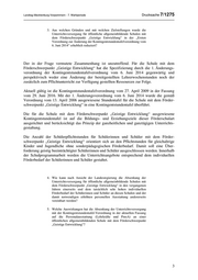 Landtag Mecklenburg-Vorpommern - 7. Wahlperiode Drucksache 7/1275 3. Aus welchen Gründen und mit welchen Zielstellungen wurde die Unterrichtsversorgung für öffentliche allgemeinbildende Schulen mit dem Förderschwerpunkt „Geistige Entwicklung“ in der „Ersten Verordnung zur Änderung der Kontingentstundentafelverordnung vom 6. Juni 2014“ erheblich reduziert? Der in der Frage vermutete Zusammenhang ist unzutreffend. Für die Schule mit dem Förderschwerpunkt „Geistige Entwicklung“ hat die Spezifizierung durch die 1. Änderungs- verordnung der Kontingentstundentafelverordnung vom 6. Juni 2014 gegenwärtig und perspektivisch weder eine Änderung der bereitgestellten Lehrerwochenstunden noch der zusätzlich zum Pflichtunterricht zur Verfügung gestellten Ressourcen zur Folge. Aktuell gültig ist die Kontingentstundentafelverordnung vom 27. April 2009 in der Fassung vom 29. Juni 2016. Mit der 1. Änderungsverordnung vom 6. Juni 2014 wurde die gemäß Verordnung vom 13. April 2006 ausgewiesene Stundentafel für die Schule mit dem Förder- schwerpunkt „Geistige Entwicklung“ in eine Kontingentstundentafel überführt. Die für die Schule mit dem Förderschwerpunkt „Geistige Entwicklung“ ausgewiesene Kontingentstundentafel ist auf die Bildungs- und Erziehungsziele dieser Förderschulart ausgerichtet und berücksichtigt das Prinzip der ganzheitlichen und ganztägigen Unterrichts- gestaltung. Die Anzahl der Schülerpflichtstunden für Schülerinnen und Schüler mit dem Förder- schwerpunkt „Geistige Entwicklung“ orientiert sich an den Pflichtstunden für gleichaltrige Kinder und Jugendliche ohne sonderpädagogischen Förderbedarf. Damit soll eine Über- forderung geistig beeinträchtigter Schülerinnen und Schüler ausgeschlossen werden. Innerhalb der Schulprogrammarbeit werden die Unterrichtsangebote entsprechend dem individuellen Förderbedarf der Schülerinnen und Schüler gestaltet. 4. Wie kann nach Ansicht der Landesregierung die Absenkung der Unterrichtsversorgung für öffentliche allgemeinbildende Schulen mit dem Förderschwerpunkt „Geistige Entwicklung“ in den vergangenen Jahren einerseits und dem tatsächlich sehr hohen individuellen Förderbedarf der Schülerinnen und Schüler an diesen Schulen und der damit notwendigen erhöhten personellen Ausstattung andererseits vereinbart werden? 5. Welche Auswirkungen hat die Absenkung der Unterrichtsversorgung mit der Kontingentstundentafel-Verordnung in der aktuellen Fassung auf die Personalausstattung (Lehrkräfte und PmsA) an einer öffentlichen allgemeinbildenden Schule mit dem Förderschwerpunkt „Geistige Entwicklung“? 3