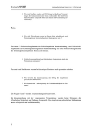 Drucksache 6/1327 Landtag Mecklenburg-Vorpommern - 6. Wahlperiode 3. Wie viele Straftaten wurden seit 2010 bislang bei ähnlichen Veranstal- tungen der linksextremistischen Szene, insbesondere der Band Feine Sahne Fischfilet festgestellt (bitte nach Datum und Veranstaltung auf- schlüsseln)? Keine. 4. Wie viele Polizeibeamte waren im Einsatz (bitte aufschlüsseln nach Polizeiinspektion, Bereitschaftspolizei, Bundespolizei usw.)? Es waren 13 Polizeivollzugsbeamte der Polizeiinspektion Neubrandenburg, zwei Polizeivoll- zugsbeamte der Kriminalpolizeiinspektion Neubrandenburg und zwei Polizeivollzugsbeamte der Kriminalpolizeiinspektion Rostock im Einsatz. 5. Welche Kosten sind dem Land Mecklenburg-Vorpommern durch den Polizeieinsatz entstanden? Personal- und Sachkosten werden bei derartigen Einsätzen nicht gesondert erhoben. 6. Wie bewertet die Landesregierung den Erfolg der eingeleiteten polizeilichen Maßnahmen? 7. Wie bewertet die Landesregierung die Verhältnismäßigkeit des Ein- satzes? Die Fragen 6 und 7 werden zusammenhängend beantwortet. Im Zusammenhang mit der vorgenannten Veranstaltung wurden keine Störungen der öffentlichen Sicherheit und Ordnung festgestellt. Die eingeleiteten polizeilichen Maßnahmen waren erfolgreich und verhältnismäßig. 2