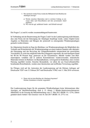 Drucksache 7/2541 Landtag Mecklenburg-Vorpommern - 7. Wahlperiode 3. Wie und durch welche Firma werden die Müllanteile beim Rückbau der Altanlagen entsorgt? a) Welche einzelnen Materialien sind in welchem Umfang zu ent- sorgen (bitte nach Klassifikation und dem prozentualen Anteil angeben)? b) Wie wird der ggf. anfallende Sonder- und Giftmüll entsorgt? Die Fragen 3, a) und b) werden zusammenhängend beantwortet. In Verbindung mit der Beantwortung der Fragen 2 und 4 ist der Landesregierung nicht bekannt, dass eine Firma mit der Entsorgung der Altanlagen beauftragt wurde, sodass folglich keine Angaben zu Materialen und Mengen der potenziell zu entsorgenden Windenergieanlagen gemacht werden können. Im Allgemeinen besteht im Zuge des Rückbaus von Windenergieanlangen die Möglichkeit des Verkaufs und Weiterbetriebs der Windenergieanlage an einem anderen Standort oder alternativ die Entsorgung und das Recycling der Anlagenbestandteile entsprechend der gesetzlichen Vorschriften. Es wird eine möglichst hohe Recyclingquote angestrebt, die nach heutigem Stand bei 80 bis 90 Prozent liegt, gemessen an der Gesamtmasse. Metalle werden zum Roh- materialpreis veräußert und in anderen Konstruktionen wiederverwendet; mineralische Materialen können im Rahmen von Baumaßnahmen, vorwiegend im Straßenbau, einer zweiten Nutzung zugeführt werden. Einzelne Bestandteile, vor allem die aus Faserverbundstoffen bestehenden Rotorblattteile, werden einer thermischen und stofflichen Verwertung zugeführt. Im Übrigen wird auf die Antworten der Landesregierung auf die Kleinen Anfragen auf Drucksache 7/207 vom 15. Februar 2017 und Drucksache 7/1962 vom 11. Mai 2018 verwiesen. 4. Wann wird mit dem Rückbau der Altanlagen begonnen? Welcher Zeitrahmen ist hierfür vorgesehen? Der Landesregierung liegen für die genannten Windkraftanlagen keine Informationen über Anzeigen zur Betriebseinstellung nach § 15 Absatz 3 Bundes-Immissionsschutzgesetz (BImSchG) in der Fassung der Bekanntmachung vom 17. Mai 2013 (BGBl. I S. 1274), zuletzt geändert durch Artikel 3 des Gesetzes vom 18. Juli 2017 (BGBl. I S. 2771) vor. 2