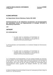 Schwimmunterricht an den öffentlichen Grundschulen und Grundschulteilen der verbundenen Grund- und Regionalschulen im Schuljahr 2015/2016 in Mecklenburg-Vorpommern