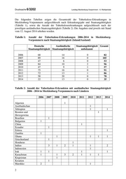 Landtag Mecklenburg-Vorpommern - 6. Wahlperiode Drucksache 6/3202 2006 2007 2008 2009 2010 2011 2012 2013 2014 Mauretanien 1 1 Mazedonien 1 Moldawien 1 Nepal 1 1 Nordkorea 1 Pakistan 1 Polen 1 Rumänien 1 1 Russische 3 2 2 3 6 2 Förderation Serbien 1 1 Somalia 1 4 1 Südafrika 1 Togo 1 Türkei 1 1 Ukraine 1 1 1 Usbekistan 1 Vietnam 2 4 1 1 3 1 1 3 1 Land unbekannt 6 2 3