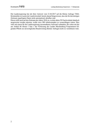 Drucksache 7/572 Landtag Mecklenburg-Vorpommern - 7. Wahlperiode Die Landesregierung hat mit ihrer Antwort vom 21.04.2017 auf die Kleine Anfrage 7/464, Kriminalität zu Lasten der Landwirtschaft, bereits darauf hingewiesen, dass die für den dortigen Zeitraum angefragten Daten nicht automatisiert abrufbar sind. Dieses trifft auch auf den Zeitraum des Jahres 2016 zu, zu dem allein 593 Sachverhalte händisch ausgewertet werden müssten, wofür circa 300 Arbeitsstunden zu veranschlagen wären. Dies wäre mit einem für die Landesregierung unzumutbaren Aufwand verbunden, der schon mit der aus Artikel 40 Absatz 1 Satz 1 der Verfassung des Landes Mecklenburg-Vorpommern fol- genden Pflicht zur unverzüglichen Beantwortung Kleiner Anfragen nicht zu vereinbaren wäre. 2
