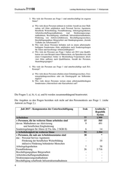 Landtag Mecklenburg-Vorpommern - 7. Wahlperiode Drucksache 7/1198 Juli 2017 - Komponenten der Unterbeschäftigung Irak Arabische Republik Syrien Förderung von Arbeitsverhältnissen * * Beschäftigungszuschuss (Restabwicklung) - - Bundesprogramm "Soziale Teilhabe am Arbeitsmarkt" - - kurzfristige Arbeitsunfähigkeit * * = Unterbeschäftigung im engeren Sinne 122 * + Personen, die weit weg vom Arbeitslosenstatus sind, in Maßnahmen, die gesamtwirtschaftlich entlasten - * davon: Gründungszuschuss - - Einstiegsgeld - Variante: Selbständigkeit - * Altersteilzeit nach dem Altersteilzeitgesetz - - nachrichtlich: Kurzarbeiter (Beschäftigtenäquivalent) - - = Unterbeschäftigung (ohne Kurzarbeit) 122 5.335 Quelle: Statistik der Bundesagentur für Arbeit * Eine Übermittlung von Einzelangaben ist unzulässig. Zahlenwerte kleiner 3 und Daten, aus denen rechnerisch auf einen Zahlenwert kleiner 3 geschlossen werden kann, werden anonymisiert oder zu Gruppen zusammen- gefasst. Zu 3c) Der Landesregierung liegen hierzu keine Erkenntnisse vor. 5. Welche Studiengänge werden von Personen aus Frage 1 in Mecklenburg-Vorpommern studiert (bitte auflisten nach Hochschule, Staatsbürgerschaft, Studiengang, Anzahl der Studenten)? Welche Studiengänge wurden in welcher Anzahl seit 2011 durch Personen aus Frage 1 abgeschlossen? Die amtliche Hochschulstatistik ermöglicht keine Rückschlüsse auf Personen mit Bleiberecht. Der Landesregierung liegen daher keine entsprechenden Daten vor. 6. Wie viele der Personen aus Frage 1 haben sich in Mecklenburg- Vorpommern seit 2013 selbstständig gemacht (bitte auflisten nach Anzahl, Nationalität und Gewerbe)? Wie hoch ist der Anteil an denjenigen, die Fördermittel zur Gründung erhalten haben? Der Landesregierung liegen hierzu keine Erkenntnisse vor. 5