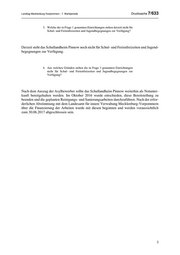 Landtag Mecklenburg-Vorpommern - 7. Wahlperiode Drucksache 7/633 3. Welche der in Frage 1 genannten Einrichtungen stehen derzeit nicht für Schul- und Ferienfreizeiten und Jugendbegegnungen zur Verfügung? Derzeit steht das Schullandheim Pinnow noch nicht für Schul- und Ferienfreizeiten und Jugend- begegnungen zur Verfügung. 4. Aus welchen Gründen stehen die in Frage 3 genannten Einrichtungen nicht für Schul- und Ferienfreizeiten und Jugendbegegnungen zur Verfügung? Nach dem Auszug der Asylbewerber sollte das Schullandheim Pinnow weiterhin als Notunter- kunft bereitgehalten werden. Im Oktober 2016 wurde entschieden, diese Bereitstellung zu beenden und die geplanten Reinigungs- und Sanierungsarbeiten durchzuführen. Nach der erfor- derlichen Abstimmung mit dem Landesamt für innere Verwaltung Mecklenburg-Vorpommern über die Finanzierung der Arbeiten wurde mit diesen begonnen und werden voraussichtlich zum 30.06.2017 abgeschlossen sein. 3
