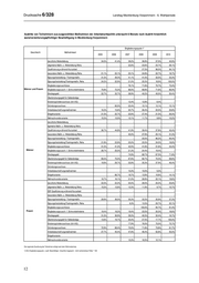 Landtag Mecklenburg-Vorpommern - 6. Wahlperiode Drucksache 6/328 Die Teilnehmer an Programmen des Bundes weist die folgende Tabelle aus. Die Angaben beruhen auf Daten der Bundesagentur für Arbeit. 1) Teilnehmer an Programmen des Bundes in Mecklenburg-Vorpommern Zugang / Eintritte / Bew illigungen (Jahressumme) Bundesprogramm Perspektive 50plus sonstige Bundesprogramme Geschlecht Maßnahmeart 2011 2011 2009 2010 2008 2009 2010 Jan bis Okt Jan bis Okt berufliche Weiterbildung 4 12 - - - - - Eignungsfeststellung / Trainingsmaßn. * - - - - - - Eingliederungszuschüsse 12 5 3 - - - - Männer und Frauen Entgeltvariante - - * - - - - Mehraufw andsvariante - - 7 - - - - Bundesprogramm Perspektive 50plus 3.059 4.228 3.276 - - - - sonstige Bundesprogramme - - - 258 80 26 85 berufliche Weiterbildung * 6 - - - - - Eignungsfeststellung / Trainingsmaßn. * - - - - - - Eingliederungszuschüsse 7 * * - - - - Männer Entgeltvariante - - - - - - - Mehraufw andsvariante - - 4 - - - - Bundesprogramm Perspektive 50plus 1.685 2.329 1.837 - - - - sonstige Bundesprogramme - - - 126 38 15 45 berufliche Weiterbildung * 6 - - - - - Eignungsfeststellung / Trainingsmaßn. - - - - - - - Eingliederungszuschüsse 5 * * - - - - Frauen Entgeltvariante - - * - - - - Mehraufw andsvariante - - 3 - - - - Bundesprogramm Perspektive 50plus 1.374 1.899 1.439 - - - - sonstige Bundesprogramme - - - 132 42 11 40 Endgültige Werte zur Förderung stehen erst nach einer Wartezeit von drei Monaten fest. Die regionale Zuordnung der Teilnehmer erfolgt nach dem Wohnortprinzip. *) Die erhobenen Daten unterliegen grundsätzlich der Geheimhaltung nach § 16 BStatG. Eine Übermittlung von Einzelangaben ist daher ausgeschlossen. Aus diesem Grund w erden bei den Ihnen zur Verfügung gestellten Daten auch Zahlenw erte kleiner 3 und Daten, aus denen rechnerisch auf einen Zahlenw ert kleiner 3 geschlossen w erden kann, anonymisiert oder zu Gruppen zusammengefasst. 1) Daten stehen nur für die ausgew iesenen Jahre zur Verfügung. 5. Wie haben sich die Eingliederungsquoten in den jeweiligen Maßnah- men/Instrumenten seit dem Jahr 2005 in Mecklenburg-Vorpommern insgesamt sowie getrennt nach Frauen und Männern entwickelt? Die nächste Tabelle gibt eine Übersicht zu den Eingliederungsquoten für Teilnehmer an ausgewählten arbeitsmarktpolitischen Instrumenten. Für die Programme des Bundes sind die entsprechenden Daten der darauf folgenden Tabelle zu entnehmen. Die Angaben beruhen auf Daten der Bundesagentur für Arbeit. 11