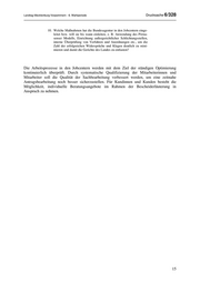 Landtag Mecklenburg-Vorpommern - 6. Wahlperiode Drucksache 6/328 10. Welche Maßnahmen hat die Bundesagentur in den Jobcentern einge- leitet bzw. will sie bis wann einleiten, z. B. Anwendung des Pirma- senser Modells, Einrichtung außergerichtlicher Schlichtungsstellen, interne Überprüfung von Verfahren und Anordnungen etc., um die Zahl der erfolgreichen Widersprüche und Klagen deutlich zu mini- mieren und damit die Gerichte des Landes zu entlasten? Die Arbeitsprozesse in den Jobcentern werden mit dem Ziel der ständigen Optimierung kontinuierlich überprüft. Durch systematische Qualifizierung der Mitarbeiterinnen und Mitarbeiter soll die Qualität der Sachbearbeitung verbessert werden, um eine zeitnahe Antragsbearbeitung noch besser sicherzustellen. Für Kundinnen und Kunden besteht die Möglichkeit, individuelle Beratungsangebote im Rahmen der Bescheiderläuterung in Anspruch zu nehmen. 15