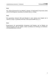 Landtag Mecklenburg-Vorpommern - 6. Wahlperiode Drucksache 6/1699 Zu a) Das schleswig-holsteinische Gesa-Modell ist bekannt. In Mecklenburg-Vorpommern haben sich die Netzwerkpartner entschieden, das Modell nicht zu verfolgen. Zu b) Der gegenseitige Austausch über gute Beispiele ist unter anderem eine Aufgabe des in Antwort zu Frage 5 a) genannten Netzwerks Arbeit und Gesundheit M-V e. V. Zu c) Kooperationen mit unterschiedlichen Institutionen und Projekten sind im Rahmen des Aktionsprogramms nicht nur möglich, sondern im Rahmen der Förderung von Strukturent- wicklungsmaßnahmen erwünscht. 7