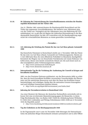 Wissenschaftliche Dienste Infobrief Seite 73 WD 1 - 3010 – 270/10 31.10. 50. Jahrestag der Unterzeichnung des Anwerbeabkommens zwischen der Bundes- republik Deutschland und der Türkei 1961 Am 31. Oktober 1961 unterzeichneten die Bundesrepublik Deutschland und die Türkei das sogenannte Anwerbeabkommen. Die Initiative zum Abkommen ging von der Türkei aus. Vertraglich sah das Abkommen zwar eine Befristung der Auf- enthaltsdauer vor, es gilt aber als Beginn der türkischen Einwanderung in die Bun- desrepublik Deutschland. Im Jahr 1973 entschloss sich die Bundesregierung ange- sichts der wirtschaftlichen Rezession zu einem generellen Anwerbestopp. – November – 02.11. 125. Jahrestag der Erteilung des Patents für das von Carl Benz gebaute Automobil 1886 Das Kaiserliche Patentamt in Deutschland erteilte am 2. November 1886 das Patent für das erste von Carl Benz erbaute Automobil mit Verbrennungsmotor. Bereits am 3. Juli 1886 hatte Benz die erste öffentliche Probefahrt in Mannheim durchgeführt. Kernstück des Wagens war ein Einzylinder-Viertaktmotor mit einem Hubraum von 0,954 Litern. Dieser wies bereits wesentliche Details auf, die auch heute noch zu den Grundpfeilern jedes Verbrennungsmotors zählen. http://www.automuseum-ladenburg.de http://www.deutsches-museum.de 06.11. Internationaler Tag für die Verhütung der Ausbeutung der Umwelt in Kriegen und bewaffneten Konflikten 2001 von den Vereinten Nationen proklamiert, um das Bewusstsein dafür zu schär- fen, dass die durch bewaffnete Konflikte verursachten Umweltschäden die Ökosys- teme und die natürlichen Ressourcen weit über die Dauer des Konfliktes hinaus beeinträchtigen und schädigen, häufig über die nationalen Grenzen hinausgehen und auch künftige Generationen belasten können. http://www.un.org/depts/dhl/environment_war/index.html 09.11. Jahrestag der Novemberrevolution in Deutschland 1918 Aus einer Meuterei der Matrosen der deutschen Hochseeflotte entwickelte sich in kurzer Zeit eine revolutionäre Massenbewegung gegen die Monarchie, in deren Folge Reichskanzler Max von Baden (1867-1929) die Abdankung Kaiser Wilhelms II. (1859-1941) verkündete und Philipp Scheidemann (1865-1939) am 9. November 1918 die Republik ausrief. http://www.bundestag.de/dokumente/analysen/2008/novemberrevolution.pdf 09.11. Tag des Gedenkens an die Reichspogromnacht 1938 In der Pogromnacht vom 9. zum 10. November 1938 überzogen die Nationalsozia- listen die jüdischen Bürger Deutschlands erstmals systematisch und in aller Öffent-
