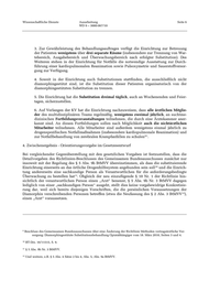 Wissenschaftliche Dienste Ausarbeitung Seite 10 WD 9 – 3000-067/10 der Behandlungseinrichtung sowie die Anzahl der notwendigen jährlichen Fortbildungen der 26 ärztlichen Mitglieder des multidisziplinären Teams (wenigstens zwei Fortbildungen jährlich ). 27 5.3.1. Mindestanzahl der separaten Räume Hinsichtlich der Mindestanzahl separater Behandlungsräume für Diamorphinpatienten enthält die Studiendokumentation lediglich den Hinweis, dass die Behandlungsanstalt eine gewisse „Größe“ haben musste und dass auch für das begleitende Case Managment und die psychoedukative Therapie/Drogenberatung „Räumlichkeiten“ zur Verfügung zu stellen waren . 28 Eine genaue Anzahl der separaten Behandlungsräume ist insofern nicht benannt. Allerdings ist davon auszugehen, dass wegen der Verwendung des Plurals mindestens zwei, möglicherweise aber auch mehr separate Räume zur Verfügung zu stehen hatten. Mit den Vorgaben im Beschluss des Gemeinsamen Bundesausschusses, es seien „zur Betreuung der Patienten wenigstens drei separate Räume (insbesondere zur Trennung von Wartebereich, Ausgabebereich und Überwa- chungsbereich nach erfolgter Substitution) “ bereit zu halten, ist jedoch nicht notwendiger Wei- 29 se eine unzulässige Überschreitung des gesetzgeberischen Willens festzustellen. Der Gemeinsame Bundesausschuss begründet die Mindestanzahl der bereit zu stellenden Räumlichkeiten wie folgt: „Aus medizinischer Sicht ist zusätzlich eine strikte räumliche Trennung von Wartebereich, Aus- gabebereich und Überwachungsbereich nach erfolgter Substitution sinnvoll, um eine durchaus mit Konfliktpotential behaftete Durchmischung der Patienten in ihren entsprechend unterschied- lichen psychisch-physischen Bedürfnislagen zu vermeiden. Weiterhin haben die räumlichen Ge- gebenheiten der Einrichtung den entsprechenden Sicherheitskonzepten und länderspezifischen Zulassungsvoraussetzungen Rechnung zu tragen. Im Ergebnis kann eine substituierende Einrich- tung aus Sicht des G-BA die Substitution mit Diamorphin für die genannten medizinischen Zwe- cke nur dann in angemessener Prozess- und Ergebnisqualität erbringen und gleichzeitig den rechtlichen Vorgaben gerecht werden, wenn sie über mindestens drei separate Räume verfügt “. 30 Insbesondere unter Berücksichtung der studienbezogenen empirischen Vorgaben ist im Ergebnis davon auszugehen, dass die statuierte Anzahl von mindestens drei separaten Räumen für die Behandlung von Diamorphinpatienten noch keinen evidenten Verstoß gegen die gesetzlichen Vorgaben bzw. den erkennbaren gesetzgeberischen Willen indiziert. 26 Zu § 10 Nr. 3 in der Beschlussdokumentation des Gemeinsamen Bundesausschusses. 27 Zu § 10 Nr. 6 in der Beschlussdokumentation des Gemeinsamen Bundesausschusses. 28 Band 1 der Studiendokumentation: Die Wirksamkeit der Diamorphinbehandlung im Vergleich zur Methadonsubstitution – Ergebnisse der 1. und 2. Studienphase, S. 61. 29 Zu § 10 Nr. 3 in der Beschlussdokumentation des Gemeinsamen Bundesausschusses. 30 Tragende Gründe zum Beschluss des Gemeinsamen Bundesausschusses über eine Änderung der Richtlinie Metho- den vertragsärztlicher Versorgung in Anlage I: Diamorphingestützte Substitutionsbehandlung Opiatabhängiger, Seiten 4 und 5.