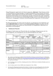 Wissenschaftliche Dienste Sachstand Seite 4 WD 3 - 3000 - 045/17 3 Einige Polizeigesetze regeln bereits den Einsatz sogenannter „Bodycams“. Diese Kameras werden von Polizeibeamten am Körper getragen. In einigen Bundesländern darf der Beamte die Kamera 4 einschalten, sobald Gefahren für Leib oder Leben bestehen. In anderen Bundesländern zeichnen die Kameras kontinuierlich auf; die Aufzeichnung wird aber nach kurzer Zeit wieder automatisch gelöscht. Nur wenn der Beamte den Aufnahmeknopf betätigt, werden die aktuellen und die noch 5 vorhandenen vorangegangen Aufnahmen dauerhaft gespeichert (sogenanntes „Pre-Recording“). 2.3. Datenschutzgesetze Die Datenschutzgesetze der Länder regeln den Einsatz von Videokameras durch Behörden und andere öffentliche Stellen der Länder, soweit keine spezielleren Normen anwendbar sind. Die Vorschriften erlauben unter anderem die Überwachung von Amtsgebäuden, öffentlichen Ver- kehrsmitteln und Kulturgütern. 3. Tabellarische Übersicht Die folgende Tabelle bietet eine Übersicht über die einschlägigen Befugnisnormen der Ver- sammlungsgesetze, der Polizeigesetze und der Datenschutzgesetze der Länder. Polizeirecht Versammlungs- Datenschutz- recht Veranstal- gefährdete gefährdete sog. recht tungen Orte Objekte „Bodycams“ Baden- § 21 IV S. 2 § 21 I PolG § 21 III PolG § 21 II PolG § 20a LDSG Württemberg PolG Bayern Art. 9 I, II Art. 32 I Art. 32 II Art. 32 III, Art. 21a Art. 32 PAG6 BayVersG PAG Nr. 2, 3 PAG 13 Nr. 3 PAG BayDSG Berlin § 24 I, IV §§ 24a I, 24b § 1 AufzG Bln § 31b BlnDSG ASOG Bln ASOG Bln Brandenburg § 31 I § 31 II § 33c BbgDSG BbgPolG BbgPolG Bremen §§ 29 III, 11 I § 29 I Brem- § 29 III § 29 V Brem- Nr. 4 Brem- § 20b BremDSG PolG BremPolG PolG PolG 3 Vgl. zu diesen neuen Regelungen ausführlich Martini/Nink/Wenzel, Bodycams zwischen Bodyguard und Big Brother, NVwZ-Extra 2016, Nr. 24, abrufbar unter http://rsw.beck.de/rsw/upload/NVwZ/NVwZ-Extra_2016_24.pdf, zuletzt ab- gerufen am 1. März 2017. Derzeit liegt ein vergleichbarer Gesetzentwurf zur Änderung des Bundespolizeigesetzes vor, vgl. BT-Drs. 18/10939. 4 So z.B. in Bayern nach Art. 32 PAG, in Hamburg nach § 8 Abs. 5 DVPolG oder in Nordrhein-Westfalen nach § 15c Abs. 1 PolG NRW. 5 So z.B. in Hessen nach § 14 Abs. 6 HSOG oder im Saarland § 27 Abs. 3 SPolG. 6 Eine besondere Befugnisnorm besteht nicht; der Einsatz von Bodycams in einem Pilotprojekt wird auf die allge- meine Befugnisnorm für öffentliche Videoaufzeichnungen gestützt, vgl. Martini/Nink/Wenzel (Fn. 3), S. 3 f.