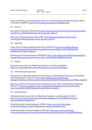 Wissenschaftliche Dienste Sachstand Seite 7 WD 3 - 3000 - 045/17 Gesetz zum Schutz personenbezogener Daten im Land Brandenburg (Brandenburgisches Daten- schutzgesetz, BbgDSG): http://bravors.brandenburg.de/gesetze/bbgdsg_2015 4.5. Bremen Bremisches Polizeigesetz (BremPolG): http://transparenz.bremen.de/sixcms/detail.php?gsid=bre- men2014_tp.c.69192.de&template=20_gp_ifg_meta_detail_d Bremisches Datenschutzgesetz (BremDSG): http://transparenz.bremen.de/sixcms/de- tail.php?gsid=66021&template=20_gp_ifg_meta_detail_d 4.6. Hamburg Gesetz über die Datenverarbeitung der Polizei (DVPolG): http://www.landesrecht-ham- burg.de/jportal/portal/page/bshaprod.psml?showdoccase=1&doc.id=jlr-PolDVGHArah- men&doc.part=X&doc.origin=bs Hamburgisches Datenschutzgesetz (HmbDSG): http://www.landesrecht-hamburg.de/jportal/por- tal/page/bshaprod.psml?showdoccase=1&doc.id=jlr-DSGHA1990rahmen&st=lr 4.7. Hessen Hessisches Gesetz über die öffentliche Sicherheit und Ordnung (HSOG): http://www.lexsoft.de/cgi-bin/lexsoft/justizportal_nrw.cgi?xid=169564,1 4.8. Mecklenburg-Vorpommern Gesetz über die öffentliche Sicherheit und Ordnung in Mecklenburg-Vorpommern (Sicherheits- und Ordnungsgesetz, SOG M-V): http://www.landesrecht-mv.de/jportal/por- tal/page/bsmvprod.psml?showdoccase=1&doc.id=jlr-SOGMV2011rahmen&doc.part=X&doc.origin=bs Gesetz zum Schutz des Bürgers bei der Verarbeitung seiner Daten (Landesdatenschutzgesetz, DSG M-V): http://www.landesrecht-mv.de/jportal/portal/page/bsmvprod.psml?showdoc- case=1&doc.id=jlr-DSGMVrahmen&doc.part=X&doc.origin=bs 4.9. Niedersachsen Niedersächsisches Gesetz über die öffentliche Sicherheit und Ordnung (Nds. SOG): http://www.nds-voris.de/jportal/portal/?quelle=jlink&query=SOG+ND&psml=bsvoris- prod.psml&max=true&aiz=true Niedersächsisches Datenschutzgesetz (NDSG): http://www.nds-voris.de/jpor- tal/?quelle=jlink&query=DSG+ND&psml=bsvorisprod.psml&max=true Niedersächsisches Versammlungsgesetz (NVersG): http://www.nds-voris.de/jpor- tal/?quelle=jlink&psml=bsvorisprod.psml&feed=bsvoris-lr&docid=jlr-VersammlGNDrahmen
