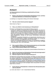 Drucksache 18/15207 Bayerischer Landtag 18. Wahlperiode Seite 2/3 Antwort des Staatsministeriums für Ernährung, Landwirtschaft und Forsten vom 14.04.2021 1.1 Werden in den bayerischen Staatswäldern Rückepferde als natur- und klima- schonende Alternative zu Forstmaschinen eingesetzt? Ja, allerdings nur in begrenztem Umfang und für kleinere Holzmengen. 1.2 Falls nein, welche Gründe sprechen dagegen? Siehe Antwort zu Frage 1.1. 1.3 Falls ja, wie effektiv ist die Anwendung von Rückepferden? Der Einsatz von Rückepferden ist durch folgende Faktoren begrenzt: – Leistung: Die Zugkraft von Rückepferden ist naturgemäß begrenzt, was deren Ein- satzspektrum auf bestimmte Holzerntemaßnahmen und schwache Sortimente be- schränkt; zudem ist die Rücke-Entfernung limitiert. Pferde können außerdem das gerückte Holz nicht poltern. Zur Anlage von Holzpoltern ist daher bei Pferderückung immer eine separate Maschine notwendig. Die Rückeleistung pro Stunde ist bei einem Pferdegespann niedriger als beim Einsatz konventioneller (maschineller) Rücketechnik. – Verfügbarkeit: Ausgebildete Rückepferde und entsprechende Unternehmer sind in Bayern nicht flächendeckend verfügbar. Rückepferde benötigen eine mehrjährige, intensive Ausbildung. Voll ausgebildete Tiere sind daher selten. – Aufwand: Der Organisationsaufwand beim Einsatz von Rückepferden ist vergleichs- weise hoch. Dies betrifft insbesondere den Transport sowie die meist mehrtägige Unterbringung der Tiere in der Einsatzregion. 2.1 Gibt es positive Effekte auf die Artenzusammensetzung und Artenvielfalt in den Wäldern durch Einsatz von Rückepferden? 2.2 Falls ja, welche positiven Effekte sind zu verzeichnen? Zu dieser Fragestellung liegen keine gesicherten wissenschaftlichen Erkenntnisse vor. 3.1 Können für den Einsatz von Rückepferden Fördermittel beantragt werden? 3.2 Wenn ja, wie hoch ist die Fördersumme? 3.3 Welches Programm sieht eine solche Förderung vor? Die Bayerische Forstverwaltung hat das Rücken mit Pferden mit einem Fördersatz von 3 Euro pro Festmeter in die Fördermaßnahme 2.3.5 „Bodenschonende Bringung“ der aktuellen waldbaulichen Förderrichtlinie WALDFÖPR 2020 aufgenommen, die am 17.02.2020 in Kraft getreten ist. Die Richtlinie ist unter https://www.waldbesitzer-portal. bayern.de/048719/index.php abrufbar. Die Maßnahme ist bislang allerdings aufgrund des Förderfokus auf Schadbewältigung, Wiederaufforstung und Naturverjüngung noch nicht geöffnet. Eine Öffnung ist nach derzeitigem Stand voraussichtlich zum Jahres- beginn 2022 zu erwarten. 4. Hat der Einsatz von Rückepferden in Anbetracht des Klimawandels poten- ziell eine Zukunft? Ja, in dem unter Antwort 1.1 und 1.3 beschriebenem Rahmen.