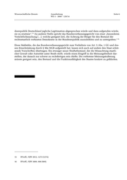 Wissenschaftliche Dienste Ausarbeitung Seite 6 WD 3 - 3000 - 129/14 desrepublik Deutschland jegliche Legitimation abgesprochen würde und dazu aufgerufen würde, 15 sie zu ersetzen“. An anderer Stelle spricht das Bundesverfassungsgericht von einer „besonderen Verächtlichmachung […], welche geeignet [ist], die Achtung der Bürger für den Bestand der 16 rechtsstaatlich verfassten Demokratie in der Bundesrepublik auszuhöhlen und zu untergraben.“ Diese Maßstäbe, die das Bundesverfassungsgericht zum Verhältnis von Art. 5 Abs. 1 GG und des- sen Einschränkung durch § 90a StGB aufgestellt hat, lassen sich auch auf andere den Staat schüt- zende Vorschriften übertragen. Ein etwaiger neuer Straftatbestand, der die Missachtung staatli- cher Gewalt oder Autorität unter Strafe stellt, würde einen Eingriff in die Meinungsfreiheit dar- stellen, der danach nur schwer zu rechtfertigen sein dürfte. Die verbotene Meinungsäußerung müsste geeignet sein, den Bestand und die Funktionsfähigkeit des Staates konkret zu gefährden. 15 BVerfG, NJW 2012, 1273 (1274). 16 BVerfG, NJW 2009, 908 (909).