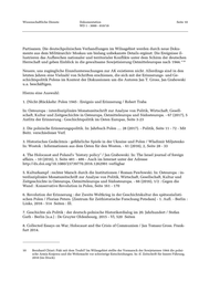 Wissenschaftliche Dienste Dokumentation Seite 10 WD 1 - 3000 - 010/18 Partisanen. Die deutschpolnischen Verhandlungen im Wilnagebiet werden durch neue Doku- mente aus dem Militärarchiv Moskau um bislang unbekannte Details ergänzt. Die Ereignisse il- lustrieren das Aufbrechen nationaler und territorialer Konflikte unter dem Schirm der deutschen 10 Herrschaft und geben Einblick in die gewaltsame Sowjetisierung Ostmitteleuropas nach 1944.“ Neuere, uns zugängliche Einzeluntersuchungen zur AK existieren nicht. Allerdings sind in den letzten Jahren eine Vielzahl von Schriften erschienen, die sich mit der Erinnerungs- und Ge- schichtspolitik Polens im Kontext der Diskussionen um die Autoren Jan T. Gross, Jan Grabowski u.a. beschäftigen. Hierzu eine Auswahl: 1. (Nicht-)Rückkehr: Polen 1945 : Ereignis und Erinnerung / Robert Traba In: Osteuropa : interdisziplinäre Monatszeitschrift zur Analyse von Politik, Wirtschaft, Gesell- schaft, Kultur und Zeitgeschichte in Osteuropa, Ostmitteleuropa und Südosteuropa. - 67 (2017), 5 Antlitz der Erinnerung : Geschichtspolitik im Osten Europas, Seite 3-23 2. Die polnische Erinnerungspolitik. In: Jahrbuch Polen .... 28 (2017). - Politik, Seite 11 - 72 - Mit Beitr. verschiedener Verf. 3. Historisches Gedächtnis : gefährliche Spiele in der Ukraine und Polen / Wladimir Miljutenko In: Wostok : Informationen aus dem Osten für den Westen. - 61 (2016), 2, Seite 28 - 33 4. The Holocaust and Poland's "history policy" / Jan Grabowski. In: The Israel journal of foreign affairs. - 10 (2016), 3, Seite 481 - 486 - Auch im Internet unter der Adresse http://dx.doi.org/10.1080/23739770.2016.1262991 verfügbar 5. Kulturkampf : rechter Marsch durch die Institutionen / Roman Pawłowski. In: Osteuropa : in- terdisziplinäre Monatszeitschrift zur Analyse von Politik, Wirtschaft, Gesellschaft, Kultur und Zeitgeschichte in Osteuropa, Ostmitteleuropa und Südosteuropa. - 66 (2016), 1/2 : Gegen die Wand : Konservative Revolution in Polen, Seite 161 - 170 6. Revolution der Erinnerung : der Zweite Weltkrieg in der Geschichtskultur des spätsozialisti- schen Polen / Florian Peters. [Zentrum für Zeithistorische Forschung Potsdam] - 1. Aufl. - Berlin : Links, 2016 - 514 Seiten : Ill. 7. Geschichte als Politik : der deutsch-polnische Historikerdialog im 20. Jahrhundert / Stefan Guth - Berlin [u.a.] : De Gruyter Oldenbourg, 2015 - VI, 520 Seiten 8. Collected Essays on War, Holocaust and the Crisis of Communism / Jan Tomasz Gross. Frank- furt 2014. 10 Bernhard Chiari: Pakt mit dem Teufel? Im Wilnagebiet stellte der Vormarsch der Sowjetarmee 1944 die polni- sche Armia Krajowa und die Wehrmacht vor schwierige Entscheidungen. In: if. Zeitschrift für Innere Führung, 2018 (im Druck).