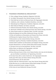 Wissenschaftliche Dienste Dokumentation Seite 5 WD 1 - 3000 - 010/18 5 2. Pressestimmen in Deutschland zum „Holocaust-Gesetz“ 1) Polen verklagen Zeitung, Frankfurter Allgemeine, 05.03.2018 2) Aus Opfern Täter gemacht, Neue Zürcher Zeitung, 01.03.2018 3) Polen bleibt hart im Streit um Holocaust-Gesetz, Der Tagesspiegel, 26.02.2018 4) Aufarbeiten, nicht verdecken, Frankfurter Rundschau, 24.02.2018 5) Hahnenkampf ums Weltgewissen, Frankfurter Allgemeine, 24.02.2018 6) Mehr Politik als Wahrheit, Zeit Online, 22.02.2018 7) Politik der historischen Wunden, Neue Zürcher Zeitung, 21.02.2018 8) Morawiecki verheddert sich im Holocaust-Gesetz, Neue Zürcher Zeitung, 21.02.2018 9) Polens Premier spricht von "jüdischen Tätern", Die Welt, 19.02.2018 10) Beschwichtigung wird zum Eklat, Süddeutsche Zeitung, 19.02.2018 11) Polen ruft Landsleute zur Denunziation auf, Passauer Neue Presse, 16.02.2018 12) Widerspruch ist legitim, Passauer Neue Presse, 16.02.2018 13) Denunziation aus dem Ausland, Berliner Zeitung, 16.02.2018 14) Seltsamer Appell aus Warschau, Frankfurter Rundschau, 16.02.2018 15) Polen fordert Landsleute zur Denunziation auf, Stuttgarter Zeitung, 16.02.2018 16) Alles dokumentieren, was Polen schadet, Kölner-Stadt-Anzeiger, 16.02.2018 17) "Da kann ich mir nur an den Kopf fassen", Die Welt, 15.02.2018 18) Eine Nation von Märtyrern, Der Tagesspiegel, 12.02.2018 19) Polnischer Frust, Der Spiegel, 10.02.2018 20) Neues Holocaust-Gesetz in Polen: In der Ukraine fürchten viele, dass sich die Beziehun- gen zum Nachbarn verschlechtern, die Tageszeitung, 10.02.2018 21) "In dieser Form sollte es nicht in Kraft treten", Der Tagesspiegel, 08.02.2018 22) Die ganze Welt schaut aufs Ghetto, Berliner Zeitung, 08.02.2018 23) Geschichtszensur, Die Zeit, 08.02.2018 24) Polen treibt sein «Holocaust-Gesetz» voran, Neue Zürcher Zeitung, 08.02.2018 25) Das Böse kann nur von außen kommen, Kölner-Stadt-Anzeiger, 07.02.2018 26) Duda unterschreibt General, Anzeiger, 07.02.2018 27) Ein Gesetz als Last, Süddeutsche Zeitung, 07.02.2018 5 Siehe Anhang 1