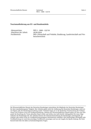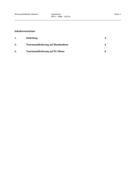 Wissenschaftliche Dienste Sachstand Seite 3 WD 5 - 3000 - 122/18 Inhaltsverzeichnis 1. Einleitung 4 2. Tourismusförderung auf Bundesebene 4 3. Tourismusförderung auf EU-Ebene 8