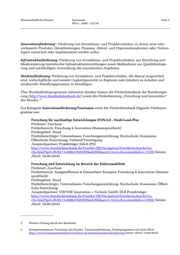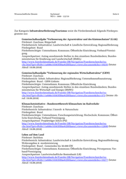 Wissenschaftliche Dienste Sachstand Seite 5 WD 5 - 3000 - 122/18 Innovationsförderung : Förderung von Investitions- und Projektvorhaben, in denen neue oder 3 verbesserte Produkte, Dienstleistungen, Prozesse, Ablauf- und Organisationsformen oder Techno- logien entwickelt oder implementiert werden sollen. Infrastrukturförderung: Förderung von Investitions- und Projektvorhaben, zur Errichtung und Modernisierung touristischer Infrastruktureinrichtungen sowie Maßnahmen zur Qualitätssteige- rung und nachhaltigen Ausrichtung des touristischen Angebotes. Strukturförderung: Förderung von Investitions- und Projektvorhaben, die darauf ausgerichtet sind, wirtschaftliche und soziale Ungleichgewichte in Regionen oder Ländern zu beheben und strukturelle Wandlungsprozesse zu bewältigen. Über Bundesförderprogramme informiert darüber hinaus die Förderdatenbank der Bundesregie- rung (http://www.foerderdatenbank.de/) sowie die Förderberatung „Forschung und Innovation“ des Bundes.“ 4 Zur Kategorie Innovationsförderung/Tourismus weist die Förderdatenbank folgende Förderpro- gramme aus: Forschung für nachhaltige Entwicklungen (FONA3) - Stadt-Land-Plus Förderart: Zuschuss Förderbereich: Forschung & Innovation (themenspezifisch) Fördergebiet: Bund Förderberechtigte: Unternehmen; Forschungseinrichtung; Hochschule; Kommune; Öffentliche Einrichtung; Verband/Vereinigung Ansprechpartner: Projektträger Jülich (PtJ) http://www.foerderdatenbank.de/Foerder-DB/Navigation/Foerderrecherche/su- che.html?get=db20c11a688e10383fd0ae62bfdaaea1;views;document&doc=13309 (letzter Abruf: 19.09.2018) Forschung und Entwicklung im Bereich der Elektromobilität Förderart: Zuschuss Förderbereich: Energieeffizienz & Erneuerbare Energien; Forschung & Innovation (themen- spezifisch) Fördergebiet: Bund Förderberechtigte: Unternehmen; Forschungseinrichtung; Hochschule; Kommune; Öffent- liche Einrichtung Ansprechpartner: VDI/VDE Innovation + Technik GmbH; DLR Projektträger http://www.foerderdatenbank.de/Foerder-DB/Navigation/Foerderrecherche/su- che.html?get=db20c11a688e10383fd0ae62bfdaaea1;views;document&doc=13650 (letzter Abruf: 19.09.2018) 3 Weitere Fettung durch den Bearbeiter. 4 Kompetenzzentrum Tourismus des Bundes, Tourismusförderung, Förderprogramme auf einen Blick. https://www.kompetenzzentrum-tourismus.de/wissen/tourismusfoerderung (letzter Abruf: 19.09.2018)