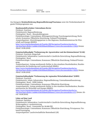 Wissenschaftliche Dienste Sachstand Seite 7 WD 5 - 3000 - 122/18 Zur Kategorie Strukturförderung (Regionalförderung)/Tourismus weist die Förderdatenbank fol- gende Förderprogramme aus: Bundesmodellvorhaben Unternehmen Revier Förderart: Zuschuss Förderbereich: Regionalförderung Fördergebiet: Bund – Braunkohleregionen Förderberechtigte: Unternehmen; Bildungseinrichtung; Forschungseinrichtung; Hoch- schule; Kommune; Öffentliche Einrichtung; Verband/Vereinigung Ansprechpartner: Abwicklungspartner in den Regionen; Bundesministerium für Wirt- schaft und Energie (BMWi) http://www.foerderdatenbank.de/Foerder-DB/Navigation/Foerderrecherche/su- che.html?get=db20c11a688e10383fd0ae62bfdaaea1;views;document&doc=13620 (letzter Abruf: 19.09.2018) Gemeinschaftsaufgabe "Verbesserung der Agrarstruktur und des Küstenschutzes" (GAK) Förderart: Zuschuss; Bürgschaft Förderbereich: Infrastruktur; Landwirtschaft & Ländliche Entwicklung; Regionalförderung Fördergebiet: Bund Förderberechtigte: Unternehmen; Kommune; Öffentliche Einrichtung; Verband/Vereini- gung Ansprechpartner: Antrag annehmende Stellen in den einzelnen Bundesländern; Bundes- ministerium für Ernährung und Landwirtschaft (BMEL) http://www.foerderdatenbank.de/Foerder-DB/Navigation/Foerderrecherche/su- che.html?get=db20c11a688e10383fd0ae62bfdaaea1;views;document&doc=10235 (letzter Abruf: 19.09.2018) Gemeinschaftsaufgabe "Verbesserung der regionalen Wirtschaftsstruktur" (GRW) Förderart: Zuschuss Förderbereich: Arbeit; Infrastruktur; Regionalförderung; Unternehmensfinanzierung Fördergebiet: Bund - GRW-Gebiete Förderberechtigte: Unternehmen; Kommune; Öffentliche Einrichtung Ansprechpartner: Antrag annehmende Stellen in den einzelnen Bundesländern; Bundes- ministerium für Wirtschaft und Energie (BMWi) http://www.foerderdatenbank.de/Foerder-DB/Navigation/Foerderrecherche/su- che.html?get=db20c11a688e10383fd0ae62bfdaaea1;views;document&doc=373 (letzter Ab- ruf: 19.09.2018) Leben auf dem Land Förderart: Darlehen Förderbereich: Infrastruktur; Landwirtschaft & Ländliche Entwicklung; Regionalförderung; Wohnungsbau & -modernisierung Fördergebiet: Bund - Gemeinden bis 50.000 EW Förderberechtigte: Unternehmen; Kommune; Öffentliche Einrichtung; Privatperson; Ver- band/Vereinigung Ansprechpartner: Landwirtschaftliche Rentenbank (LR)