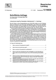 18. Wahlperiode 27.11.2020 Drucksache 18/10630 Schriftliche Anfrage des Abgeordneten Christoph Maier AfD vom 24.09.2020 Linksextremer Angriff auf Gaststätte in Marktoberdorf? – 2. Nachfrage Wie die Polizei in einer Pressemitteilung vom 20.02.2020 meldet, hat ein 67-jähriger Mann am Abend des 19.02.2020 einen Silvesterböller in den Garten einer Gaststätte geworfen. Der Mann wurde in der Nähe des Tatortes aufgriffen. Er trug eine Sturmhau- be, eine Spraydose und weitere Böller bei sich. Die Polizei nahm den Mann fest und ließ ihn kurz darauf wieder frei. Er habe „psychisch labil“ und „verwirrt“ gewirkt. In ihrer Antwort auf die Schriftliche Anfrage des Abgeordneten Christoph Maier (AfD; Drs. 18/8243) gab die Staatsregierung an, dass in der Motivation des Tatverdächtigen durchaus politisch motivierte Beweggründe erkennbar waren. Die strafrechtlichen Er- mittlungsverfahren seien indes wegen fehlender Tatbestandsmäßigkeit, Rechtswidrig- keit und Schuld ohne Restverdacht eingestellt worden. In ihrer Stellungnahme vom 20.09.2020 gab die Staatsregierung ferner auf die Frage „Warum wurde in der Pressemitteilung vom 20.02.2020 nicht erwähnt, dass es sich bei der betroffenen Gaststätte um ein Gebäude handelt, in dem zeitgleich die AfD eine Versammlung abhielt?“ an, ein Kausalzusammenhang zwischen dem Verhalten des Betroffenen und einer in der Gaststätte stattfindenden Veranstaltung sei zum Zeitpunkt der Erstellung der Pressemeldung nicht feststellbar gewesen. Daher sei auch ein Hin- weis auf die Veranstaltung unterblieben. Die Vernehmung habe erst nach der Erstel- lung des Presseberichts stattgefunden. Ich frage die Staatsregierung: 1. Wann wurde der Pressebericht erstellt?.............................................................. 2 2. Wann fand die Vernehmung statt?....................................................................... 2 3. Wann wurde der Pressebericht veröffentlicht?.................................................... 2 4. Warum wurde der Pressebericht nicht nachträglich um die Information er- gänzt, dass ein Zusammenhang der Tat zur AfD-Veranstaltung festzustellen sei?....................................................................................................................... 2 5.1 Welche konkreten Tatbestandsmerkmale waren hier nicht gegeben, sodass die Staatsanwaltschaft die Ermittlungen aufgrund fehlender Tatbestands- mäßigkeit einstellte?............................................................................................. 2 5.2 Welche konkrete Begebenheit liegt der Tatsache zugrunde, dass die Staats- anwaltschaft die Rechtswidrigkeit der Tat verneinte?.......................................... 2 5.3 Welche konkrete Begebenheit liegt der Tatsache zugrunde, dass die Staats- anwaltschaft von einer „Schuld ohne Restverdacht“ spricht?.............................. 2 Hinweis des Landtagsamts: Zitate werden weder inhaltlich noch formal überprüft. Die korrekte Zitierweise liegt in der Verantwortung der Fragestellerin bzw. des Fragestellers sowie der Staatsregierung. Drucksachen, Plenarprotokolle sowie die Tagesordnungen der Vollversammlung und der Ausschüsse sind im Internet unter www.bayern.landtag.de – Dokumente abrufbar. Die aktuelle Sitzungsübersicht steht unter www.bayern.landtag.de – Aktuelles/Sitzungen/Tagesübersicht zur Verfügung.