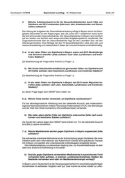 Drucksache 18/7910 Bayerischer Landtag 18. Wahlperiode Seite 4/4 engpässen bei einzelnen Arzneimitteln. In der Regel stehen aber ein oder mehrere Alternativpräparate zur Verfügung, sodass es in den meisten Fällen nicht zu einem Ver sorgungsengpass kommt. Eine Übersicht gemeldeter Lieferengpässe bieten die Internetangebote der zustän digen Bundesoberbehörden, d. h. bei Arzneimitteln des Bundesinstituts für Arzneimittel und Medizinprodukte (BfArM) bzw. bei Impfstoffen des Paul-Ehrlich-Instituts (PEI). Informationen zur konkreten regionalen Verteilung von Arzneimitteln liegen dem StMGP nicht vor. 8. a) Welche Maßnahmen ergreift die Staatsregierung zur Bekämpfung von Diph- therie (bitte nach Maßnahmen und Landkreisen/kreisfreien Städten auflisten)? b) Welche Präventionsmaßnahmen ergreift die Staatsregierung, um zukünftige Ausbrüche der Diphtherie zu verhindern (bitte auflisten)? Impfungen gehören zu den wirksamsten und wichtigsten medizinischen Maßnahmen. Wie unter Frage 7 a aufgeführt, stehen zur Prophylaxe von Diphtherie-Infektionen in Deutschland Impfstoffe zur Verfügung. Bayern setzt sich im Rahmen der Bayerischen Impfstrategie – zusammen mit zahlreichen weiteren Impfakteuren in der Bayerischen Landesarbeitsgemeinschaft Impfen (LAGI) – seit vielen Jahren engagiert für eine Steige rung der Impfquoten mittels breiter, guter Aufklärung, Förderung der Impfqualifikation von Ärzten und Multiplikatoren, Abbau struktureller Hürden und Verbesserung eines niedrig schwelligen Impfzugangs ein. Vergleichsweise gute bzw. kontinuierlich steigende Impf quoten bei den meisten empfohlenen Impfungen zeigen den Erfolg dieses Vorgehens. Seit 2016 ist zudem am LGL der Sitz der Geschäftsstelle für die neu gegründete Na tionale Lenkungsgruppe Impfen (NaLI) hinzugekommen, die auf nationaler Ebene die Umsetzung des Nationalen Impfplans und nationaler Impfziele koordiniert. Zur Prophylaxe der Diphtherie empfiehlt die Ständige Impfkommission des RKI (STIKO) eine Grundimmunisierung von Säuglingen ab zwei Monaten. Eine spätere Impfung, auch im Erwachsenenalter, ist möglich und sinnvoll. Es bedarf regelmäßi ger Auffrischungen. Zur Wahl stehen verschiedene Kombinationsimpfstoffe (mit z. B. Pertussis, Tetanus, Poliomyelitis). Ein monovalenter Diphtherie-Impfstoff steht nicht zur Verfügung. Die Impfung richtet sich dabei gegen das Diphtherie-Toxin, nicht gegen den Diphtherie-Erreger selbst. Die erzeugte antitoxische Immunität verhindert weitgehend (schwerwiegende) Erkrankungen, nicht aber eine Infektion. Bei dem Verdacht einer re spiratorischen Diphtherie wird unverzüglich eine spezifische Antitoxingabe und parallel dazu eine unterstützende Antibiotikatherapie (je nach Resistogramm Penicillin G oder Erythromycin, bei Unverträglichkeit auch andere Makrolide, wie zum Beispiel Azithro mycin oder Clarithromycin) eingeleitet. Nähere Information zum Thema Bayerische Impfprävention finden sich unter: https:// www.lgl.bayern.de/gesundheit/praevention/impfen/index.htm