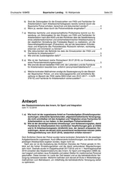 Drucksache 18/5472 Bayerischer Landtag 18. Wahlperiode Seite 2/5 b) Sind die Zeitvorgaben für die Einsatzzahlen von FASI und Fachärzten für Arbeitsmedizin nach Arbeitssicherheitsgesetz bereits konkret durch die Bayerische Polizei erhoben, berechnet und dokumentiert worden?..................... 4 c) Wenn ja, werden diese durch die Polizeiverbände eingehalten?.......................... 4 7. a) Welches fachliche und wissenschaftliche Prüfschema kommt zur An- wendung, um Zeitvorgaben für den Einsatz von FASI und Fachärzten für Arbeitsmedizin nach dem ASiG und den Richtlinien über die Gewährleistung eines arbeitsmedizinischen und sicherheitstechnischen Arbeitsschutzes in der staatlichen Verwaltung des Freistaates Bayern zu realisieren, um die Gesundheitsgefährdungen (Prävention), die auf die besonderen Erforder- nisse und Ansprüche des Polizeidienstes Rücksicht nehmen, rechtzeitig erkennen und minimieren zu können?.................................................................. 4 b) Wie dokumentiert die Behörde bis dato die Einsatzzeiten der FASI und Fachärzte für Arbeitsmedizin?............................................................................... 5 c) Wie sind die Zuständigkeiten dafür?..................................................................... 5 8. a) Wie ist der Sachstand (siehe Rückantwort 30.07.2018) zur Erarbeitung eines Personalentwicklungskonzepts?................................................................. 5 b) Wie sind die derzeit bestellten FASI (inkl. der Leitenden) und die Fachärzte für Arbeitsmedizin besoldet bzw. entlohnt (anonymisiert/tabellarisch)?................ 5 c) Welche konkreten Maßnahmen erwägt die Staatsregierung für den Bereich der Bayerischen Polizei, um eine leistungsgerechte und einheitliche Be- zahlung im Bereich der FASI (siehe BAG-Urteil vom 25.01.2017 – 4 AZR 379/15) und Fachärzte für Arbeitsmedizin sicherzustellen?.................................. 5 Antwort des Staatsministeriums des Innern, für Sport und Integration vom 11.12.2019 1. a) Wie hoch ist der zugewiesene Anteil an Fremdaufgaben (Einstellungsunter- suchungen, ambulante Sprechstunden, allgemeinmedizinische Versorgung), die nicht unmittelbar mit den Aufgaben und Tätigkeiten eines Facharztes für Arbeitsmedizin zu tun haben, in den jeweiligen Polizeiverbänden? b) Wie ist der derzeitige konkrete Umsetzungs- und Verbesserungsplan, damit Fachärzte für Arbeitsmedizin ihre rechtlichen Verpflichtungen gem. § 3 ASiG und § 18 Arbeitsschutzgesetz (ArbSchG) bzw. der danach erlassenen Ver- ordnungen, denen sie derzeit nicht ausreichend nachkommen können (siehe Vollzugsmitteilung vom 30.07.2018), tatsächlich erfüllen können? Dem Ärztlichen Dienst der Polizei wurden keine konkreten Zeitanteile für die jeweiligen Aufgabenbereiche zugewiesen. Auch differenzierte Aufzeichnungen, aus denen sich die jeweiligen Arbeitsanteile ergeben würden, liegen nicht vor. Nach wie vor ist die Auslastung des Ärztlichen Dienstes der Polizei gerade im Hin- blick auf die hohen Einstellungszahlen und die damit verbundenen Begutachtungen sehr hoch. Deshalb wurde im Doppelhaushalt 2017/2018 und im 1. Nachtragshaushalt 2018 vonseiten des Staatsministeriums des Innern, für Sport und Integration (StMI) da- rauf reagiert und sieben neue Ärztestelle und sieben Stellen für medizinisches Personal geschaffen. Diese konnten im Laufe der Zeit besetzt und so die betriebsärztliche Ver- sorgung verbessert werden. Weiterhin befinden sich derzeit elf Ärzte in Weiterbildungs- maßnahmen zum Betriebsarzt, um mittelfristig die betriebsärztliche Versorgung weiter zu optimieren.
