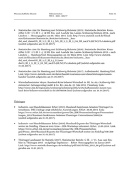 Wissenschaftliche Dienste Dokumentation Seite 19 WD 5 - 3000 - 009/17 • Statistisches Amt für Hamburg und Schleswig-Holstein (2015). Statistik informiert·... Nr. 38/2015. A. a. O. (siehe Abschnitt 2.2) • Statistisches Amt für Hamburg und Schleswig-Holstein (2016). Statistik informiert·... Nr. 52/2016. A. a. O. (siehe Abschnitt 2.2.) Thüringen Siehe Abschnitt 2.2. ***
