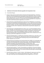 Wissenschaftliche Dienste Dokumentation Seite 18 WD 5 - 3000 - 009/17 Rheinland-Pfalz • Landtag Rheinland-Pfalz (2016). 17. Wahlperiode. Drucksache 17/539 vom 21.07.2016. A. a. O. (siehe Abschnitt 2.2.) • Landtag Rheinland-Pfalz (2016). 17. Wahlperiode. Drucksache 17/653 vom 04.08.2016. Ant- wort des Ministeriums für Wirtschaft, Verkehr, Landwirtschaft und Weinbau auf die Kleine Anfrage des Abgeordneten Jürgen Klein (AfD) – Drucksache 17/442 – Außenhandel mit Landwirtschaftsgütern. Mainz. Link: http://www.landtag.rlp.de/landtag/drucksachen/653- 17.pdf (zuletzt aufgerufen am 31.01.2017). • Ministerium für Wirtschaft, Verkehr, Landwirtschaft und Weinbau Rheinland-Pfalz (Hrsg.) (2016). Agrarbericht 2016. Mainz. August 2016. Insbesondere S. 43. Link: https://mwvlw.rlp.de/fileadmin/mwkel/Abteilung_8_Landwirtschaft/Landwirtschaft/Agrar- bericht_2016_final.pdf (zuletzt aufgerufen am 31.01.2017). • IHK-Arbeitsgemeinschaft Rheinland-Pfalz (2014). A. a. O. (siehe Abschnitt 2.2.) Saarland Siehe Abschnitt 2.2. Sachsen • Freistaat Sachsen (2015). Staatministerium für Umwelt und Landwirtschaft. Der Staatsminis- ter. A. a. O. (siehe Abschnitt 2.2.) • ONLINE FOCUS (2016). Local. Die Verlängerung des russischen Einfuhrstopps für Lebens- mittel aus der EU trifft auch die sächsischen Landwirte. Link: http://www.focus.de/regio- nal/dresden/aussenhandel-verlaengerte-russland-sanktionen-belasten-landwirte-in-sach- sen_id_5794158.html (zuletzt aufgerufen am 31.01.2017). Sachsen-Anhalt • Landtag von Sachsen-Anhalt (2015). Drucksache 6/4306 vom 13.08.2015. A. a. O. (siehe Ab- schnitt 2.2.) Schleswig-Holstein • Statistisches Amt für Hamburg und Schleswig-Holstein (2014). Statistik informiert·... Nr. 55/2014. A. a. O. (siehe Abschnitt 2.2.)