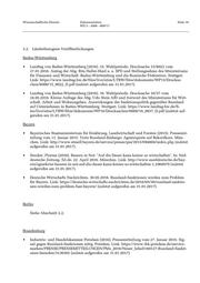 Wissenschaftliche Dienste Dokumentation Seite 16 WD 5 - 3000 - 009/17 3.2. Länderbezogene Veröffentlichungen Baden-Württemberg • Landtag von Baden-Württemberg (2016). 15. Wahlperiode. Drucksache 15/8022 vom 27.01.2016. Antrag der Abg. Rita Haller-Haid u. a. SPD und Stellungnahme des Ministeriums für Finanzen und Wirtschaft. Baden-Württemberg und die Russische Föderation. Stuttgart. Link: https://www.landtag-bw.de/files/live/sites/LTBW/files/dokumente/WP15/Drucksa- chen/8000/15_8022_D.pdf (zuletzt aufgerufen am 31.01.2017). • Landtag von Baden-Württemberg (2016). 16. Wahlperiode. Drucksache 16/37 vom 24.05.2016. Kleine Anfrage des Abg. Udo Stein AfD und Antwort des Ministeriums für Wirt- schaft, Arbeit und Wohnungsbau. Auswirkungen der Sanktionspolitik gegenüber Russland auf Unternehmen in Baden-Württemberg. Stuttgart. Link: https://www.landtag-bw.de/fi- les/live/sites/LTBW/files/dokumente/WP16/Drucksachen/0000/16_0037_D.pdf (zuletzt auf- gerufen am 31.01.2017). Bayern • Bayerisches Staatsministerium für Ernährung, Landwirtschaft und Forsten (2015). Pressemit- teilung vom 11. Januar 2015. Trotz Russland-Embargo: Agrarexporte auf Rekordkurs. Mün- chen. Link: http://www.stmelf.bayern.de/service/presse/pm/2015/094604/index.php (zuletzt aufgerufen am 31.01.2017). • Stocker, Florian (2016). Bauern in Not: "Auf die Dauer kann keiner so wirtschaften". In: Süd- deutsche Zeitung, SZ.de. 22. April 2016. München. Link: http://www.sueddeutsche.de/bay- ern/agrarkrise-bauern-in-not-auf-die-dauer-kann-keiner-so-wirtschaften-1.2960979 (zuletzt aufgerufen am 31.01.2017). • Deutsche Wirtschafts Nachrichten. 30.05.2016. Russland-Sanktionen werden zum Problem für Bayern. Link: https://deutsche-wirtschafts-nachrichten.de/2016/05/30/russland-sanktio- nen-werden-zum-problem-fuer-bayern/ (zuletzt aufgerufen am 31.01.2017). Berlin Siehe Abschnitt 2.2. Brandenburg • Industrie- und Handelskammer Potsdam (2016). Pressemitteilung vom 27. Januar 2016. Sig- nal gegen Russland-Sanktionen nötig. Potsdam. Link: https://www.ihk-potsdam.de/service- marken/PRESSE/PRESSEMITTEILUNGEN/PMs_2016/Neuer_Inhalt160127-Russland-Sankti- onen-beenden/3130392 (zuletzt aufgerufen am 31.01.2017).