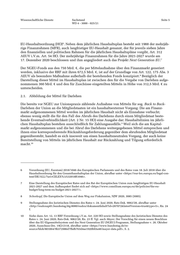 Wissenschaftliche Dienste Sachstand Seite 5 WD 4 - 3000 - 025/21 6 EU-Haushaltsordnung (HO) . Neben dem jährlichen Haushaltsplan besteht seit 1988 der mehrjäh- rige Finanzrahmen (MFR), auch langfristiger EU-Haushalt genannt, der für jeweils sieben Jahre den finanziellen und politischen Rahmen für die jährlichen Haushaltspläne vorgibt, Art. 312 AEUV i.V.m. Art. 54 HO. Der mehrjährige Finanzrahmen für die Jahre 2021-2027 wurde am 7 17. Dezember 2020 beschlossen und ihm angegliedert auch das Projekt Next Generation EU. Der NGEU-Fonds aus den 750 Mrd. €, die per Mittelaufnahme über den Finanzmarkt generiert werden, inklusive der RRF mit ihren 672,5 Mrd. €, ist auf der Grundlage von Art. 122, 175 Abs. 3 8 AEUV als besondere Maßnahme außerhalb der bestehenden Fonds konzipiert. Bezüglich der Darstellung dieser Mittel im Haushaltsplan ist zwischen den für die Vergabe von Darlehen aufge- nommenen 360 Mrd. € und den für Zuschüsse eingeteilten Mitteln in Höhe von 312,5 Mrd. € zu unterscheiden. 2.1. Abbildung der Mittel für Darlehen Die bereits vor NGEU zur Unionspraxis zählende Aufnahme von Mitteln für sog. Back to Back- Darlehen der Union an die Mitgliedstaaten ist ein haushaltsexterner Vorgang: Die am Finanz- markt aufgenommenen Mittel werden im jährlichen Haushalt nicht als Einnahme verbucht; ebenso wenig stellt die für den Fall des Abrufs des Darlehens durch einen Mitgliedstaat beste- hende Eventualverbindlichkeit (Art. 2 Nr. 15 HO) eine Ausgabe dar; Haushaltslinien im jährli- 9 chen Haushaltsplan bestehen ausschließlich für Zahlungsausfälle. Weil sich die am Kapital- markt aufgenommenen und die bei Abruf des Darlehens weitergegebenen Mittel entsprechen und ihnen eine korrespondierende Rückzahlungsforderung gegenüber dem abrufenden Mitgliedstaat gegenübersteht, handelt es sich insoweit um einen haushaltsneutralen Vorgang, der auch keine Bereitstellung von Mitteln im jährlichen Haushalt zur Rückzahlung und Tilgung erforderlich 10 macht. 6 Verordnung (EU, Euratom) 2018/1046 des Europäischen Parlaments und des Rates vom 18. Juli 2018 über die Haushaltsordnung für den Gesamthaushaltsplan der Union, abrufbar unter <https://eur-lex.europa.eu/legal-con- tent/DE/ALL/?uri=CELEX%3A32018R1046>. 7 Eine Darstellung des Europäischer Rates und des Rat der Europäischen Union zum langfristigen EU-Haushalt 2021-2027 und dem Aufbaupaket findet sich auf <https://www.consilium.europa.eu/de/policies/the-eu- budget/long-term-eu-budget-2021-2027/>. 8 Schorkopf, Die Europäische Union auf dem Weg zur Fiskalunion, NJW 2020, 3085 (3085). 9 Stellungnahme des Juristischen Dienstes des Rates v. 24. Juni 2020, Rats-Dok. 9062/20, abrufbar unter <http://eudoxap01.bundestag.btg:8080/eudox/dokumentInhalt?id=287072&latestVersion=true&type=5>, Rn. 24 f. 10 Siehe dazu Art. 12, 13 RRF-Verordnung i.V.m. Art. 220 HO sowie Stellungnahme des Juristischen Dienstes des Rates v. 24. Juni 2020, Rats-Dok. 9062/20, Rn. 23 ff. Vgl. auch Mayer, Der Vorschlag für einen neuen Beschluss über das EU-Eigenmittelsystem und das Next Generation EU (NGEU) Programm, Stellungnahme v. 26. Oktober 2020, Ausschuss-Drs. 19(21)118, abrufbar unter <https://www.bundestag.de/re- source/blob/801064/9b372986d7ffaf6763d4ae1920b93a48/mayer-data.pdf>, S. 2.