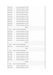 Datum Anzahl Art der Ordnungswidrigkeit 28.03.2020 4 Infektionsschutzgesetz (§ 73 IfSG) 10.04.2020 5 Infektionsschutzgesetz (§ 73 IfSG) 13.04.2020 5 Infektionsschutzgesetz (§ 73 IfSG) 16.04.2020 1 Infektionsschutzgesetz (§ 73 IfSG) 16.05.2020 9 Infektionsschutzgesetz (§ 73 IfSG) Weßling Datum Anzahl Art der Ordnungswidrigkeit 25.03.2020 2 Infektionsschutzgesetz (§ 73 IfSG) 30.03.2020 1 Infektionsschutzgesetz (§ 73 IfSG) 03.04.2020 1 Infektionsschutzgesetz (§ 73 IfSG) 13.04.2020 2 Infektionsschutzgesetz (§ 73 IfSG) 09.05.2020 1 Infektionsschutzgesetz (§ 73 IfSG) Wessobrunn Datum Anzahl Art der Ordnungswidrigkeit 10.04.2020 1 Infektionsschutzgesetz (§ 73 IfSG) Wettstetten Datum Anzahl Art der Ordnungswidrigkeit 17.04.2020 4 Infektionsschutzgesetz (§ 73 IfSG) 26.04.2020 1 Infektionsschutzgesetz (§ 73 IfSG) 08.05.2020 2 Infektionsschutzgesetz (§ 73 IfSG) 25.05.2020 4 Infektionsschutzgesetz (§ 73 IfSG) Weyarn Datum Anzahl Art der Ordnungswidrigkeit 28.03.2020 1 Infektionsschutzgesetz (§ 73 IfSG) 01.04.2020 3 Infektionsschutzgesetz (§ 73 IfSG) 05.04.2020 5 Infektionsschutzgesetz (§ 73 IfSG) 06.04.2020 2 Infektionsschutzgesetz (§ 73 IfSG) 09.04.2020 1 Infektionsschutzgesetz (§ 73 IfSG) 10.04.2020 5 Infektionsschutzgesetz (§ 73 IfSG) 15.04.2020 3 Infektionsschutzgesetz (§ 73 IfSG) 18.04.2020 4 Infektionsschutzgesetz (§ 73 IfSG) 19.04.2020 1 Infektionsschutzgesetz (§ 73 IfSG)