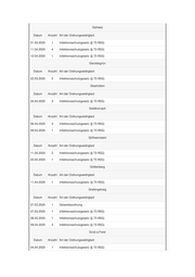 05.04.2020 3 Infektionsschutzgesetz (§ 73 IfSG) 08.04.2020 11 Infektionsschutzgesetz (§ 73 IfSG) 09.04.2020 9 Infektionsschutzgesetz (§ 73 IfSG) 10.04.2020 2 Infektionsschutzgesetz (§ 73 IfSG) 11.04.2020 8 Infektionsschutzgesetz (§ 73 IfSG) 12.04.2020 2 Infektionsschutzgesetz (§ 73 IfSG) 13.04.2020 5 Infektionsschutzgesetz (§ 73 IfSG) 14.04.2020 2 Infektionsschutzgesetz (§ 73 IfSG) 14.04.2020 1 Straßenverkehrsgesetz - Drogeneinwirkung 15.04.2020 2 Infektionsschutzgesetz (§ 73 IfSG) 16.04.2020 3 Infektionsschutzgesetz (§ 73 IfSG) 18.04.2020 3 Infektionsschutzgesetz (§ 73 IfSG) 22.04.2020 5 Infektionsschutzgesetz (§ 73 IfSG) 24.04.2020 6 Infektionsschutzgesetz (§ 73 IfSG) 25.04.2020 2 Infektionsschutzgesetz (§ 73 IfSG) 27.04.2020 3 Infektionsschutzgesetz (§ 73 IfSG) 29.04.2020 1 Infektionsschutzgesetz (§ 73 IfSG) 30.04.2020 3 Infektionsschutzgesetz (§ 73 IfSG) 15.05.2020 5 Infektionsschutzgesetz (§ 73 IfSG) 16.05.2020 1 Infektionsschutzgesetz (§ 73 IfSG) 21.05.2020 1 Infektionsschutzgesetz (§ 73 IfSG) 22.05.2020 8 Infektionsschutzgesetz (§ 73 IfSG) 24.05.2020 7 Infektionsschutzgesetz (§ 73 IfSG) 26.05.2020 3 Infektionsschutzgesetz (§ 73 IfSG) 07.06.2020 1 Infektionsschutzgesetz (§ 73 IfSG) Küps Datum Anzahl Art der Ordnungswidrigkeit 28.03.2020 3 Infektionsschutzgesetz (§ 73 IfSG) 30.03.2020 5 Infektionsschutzgesetz (§ 73 IfSG) 01.04.2020 1 Infektionsschutzgesetz (§ 73 IfSG) 02.04.2020 3 Infektionsschutzgesetz (§ 73 IfSG) 03.04.2020 3 Infektionsschutzgesetz (§ 73 IfSG) 04.04.2020 8 Infektionsschutzgesetz (§ 73 IfSG) 05.04.2020 6 Infektionsschutzgesetz (§ 73 IfSG)