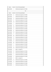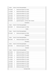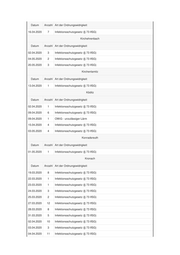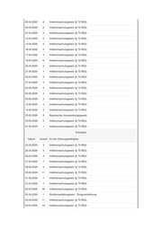 Datum Anzahl Art der Ordnungswidrigkeit 08.04.2020 1 Infektionsschutzgesetz (§ 73 IfSG) Hof Datum Anzahl Art der Ordnungswidrigkeit 25.03.2020 5 Infektionsschutzgesetz (§ 73 IfSG) 26.03.2020 1 Infektionsschutzgesetz (§ 73 IfSG) 28.03.2020 5 Infektionsschutzgesetz (§ 73 IfSG) 29.03.2020 3 Infektionsschutzgesetz (§ 73 IfSG) 30.03.2020 10 Infektionsschutzgesetz (§ 73 IfSG) 31.03.2020 7 Infektionsschutzgesetz (§ 73 IfSG) 01.04.2020 8 Infektionsschutzgesetz (§ 73 IfSG) 02.04.2020 16 Infektionsschutzgesetz (§ 73 IfSG) 03.04.2020 11 Infektionsschutzgesetz (§ 73 IfSG) 04.04.2020 8 Infektionsschutzgesetz (§ 73 IfSG) 05.04.2020 10 Infektionsschutzgesetz (§ 73 IfSG) 06.04.2020 4 Infektionsschutzgesetz (§ 73 IfSG) 08.04.2020 22 Infektionsschutzgesetz (§ 73 IfSG) 09.04.2020 11 Infektionsschutzgesetz (§ 73 IfSG) 10.04.2020 15 Infektionsschutzgesetz (§ 73 IfSG) 11.04.2020 11 Infektionsschutzgesetz (§ 73 IfSG) 12.04.2020 23 Infektionsschutzgesetz (§ 73 IfSG) 13.04.2020 7 Infektionsschutzgesetz (§ 73 IfSG) 14.04.2020 4 Infektionsschutzgesetz (§ 73 IfSG) 15.04.2020 16 Infektionsschutzgesetz (§ 73 IfSG) 15.04.2020 1 OWiG - sonstige Art 16.04.2020 5 Infektionsschutzgesetz (§ 73 IfSG) 17.04.2020 2 Infektionsschutzgesetz (§ 73 IfSG) 18.04.2020 1 Infektionsschutzgesetz (§ 73 IfSG) 19.04.2020 7 Infektionsschutzgesetz (§ 73 IfSG) 19.04.2020 1 OWiG - sonstige Art 20.04.2020 9 Infektionsschutzgesetz (§ 73 IfSG) 21.04.2020 11 Infektionsschutzgesetz (§ 73 IfSG) 23.04.2020 1 Infektionsschutzgesetz (§ 73 IfSG) 24.04.2020 1 Infektionsschutzgesetz (§ 73 IfSG)
