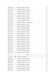 05.04.2020 8 Infektionsschutzgesetz (§ 73 IfSG) 06.04.2020 2 Infektionsschutzgesetz (§ 73 IfSG) 07.04.2020 3 Infektionsschutzgesetz (§ 73 IfSG) 12.04.2020 5 Infektionsschutzgesetz (§ 73 IfSG) 13.04.2020 5 Infektionsschutzgesetz (§ 73 IfSG) 16.04.2020 4 Infektionsschutzgesetz (§ 73 IfSG) 17.04.2020 4 Infektionsschutzgesetz (§ 73 IfSG) 18.04.2020 6 Infektionsschutzgesetz (§ 73 IfSG) 20.04.2020 2 Infektionsschutzgesetz (§ 73 IfSG) 21.04.2020 1 Infektionsschutzgesetz (§ 73 IfSG) 24.04.2020 3 Infektionsschutzgesetz (§ 73 IfSG) 27.04.2020 4 Infektionsschutzgesetz (§ 73 IfSG) 02.05.2020 5 Infektionsschutzgesetz (§ 73 IfSG) 04.05.2020 2 Infektionsschutzgesetz (§ 73 IfSG) 05.05.2020 3 Infektionsschutzgesetz (§ 73 IfSG) 13.05.2020 4 Infektionsschutzgesetz (§ 73 IfSG) 14.05.2020 2 Infektionsschutzgesetz (§ 73 IfSG) 23.05.2020 5 Bayerisches Versammlungsgesetz 23.05.2020 5 Infektionsschutzgesetz (§ 73 IfSG) 01.06.2020 1 Infektionsschutzgesetz (§ 73 IfSG) Kulmbach Datum Anzahl Art der Ordnungswidrigkeit 22.03.2020 3 Infektionsschutzgesetz (§ 73 IfSG) 25.03.2020 5 Infektionsschutzgesetz (§ 73 IfSG) 26.03.2020 4 Infektionsschutzgesetz (§ 73 IfSG) 27.03.2020 7 Infektionsschutzgesetz (§ 73 IfSG) 28.03.2020 3 Infektionsschutzgesetz (§ 73 IfSG) 30.03.2020 11 Infektionsschutzgesetz (§ 73 IfSG) 31.03.2020 1 Infektionsschutzgesetz (§ 73 IfSG) 01.04.2020 7 Infektionsschutzgesetz (§ 73 IfSG) 02.04.2020 25 Infektionsschutzgesetz (§ 73 IfSG) 02.04.2020 1 Straßenverkehrsgesetz - Drogeneinwirkung 03.04.2020 11 Infektionsschutzgesetz (§ 73 IfSG) 04.04.2020 12 Infektionsschutzgesetz (§ 73 IfSG)