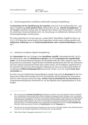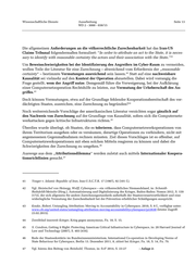 Wissenschaftliche Dienste Ausarbeitung Seite 13 WD 2 - 3000 - 038/15 Die allgemeinen Anforderungen an die völkerrechtliche Zurechenbarkeit hat das Iran-US Claims Tribunal folgendermaßen formuliert: “In order to attribute an act to the State, it is neces- sary to identify with reasonable certainty the actors and their association with the State.” 41 Um Beweisschwierigkeiten bei der Identifizierung des Angreifers im Cyber-Raum zu vermeiden, wollen Teile der Literatur für eine Zurechnung – abweichend vom Erfordernis der „reasonable certainty“ – bestimmte Vermutungen ausreichend sein lassen. Statt auf eine nachweisbare 42 Kausalität sei vielmehr auf den Kontext der Operation abzustellen. Dabei wird vorrangig die Frage gestellt, wem der Angriff nutze. Demgemäß führe die Verweigerung, bei der Aufklärung einer Computernetzoperation Rechtshilfe zu leisten, zur Vermutung der Urheberschaft des An- griffes.43 Doch können Vermutungen, etwa auf der Grundlage fehlender Kooperationsbereitschaft des ver- dächtigten Staates, ausreichen, eine Zurechnung zu begründen? 44 Noch weiterreichende Vorschläge der amerikanischen Literatur verzichten sogar gänzlich auf den Nachweis von Zurechnung auf der Grundlage von Kausalität, sofern sich die Computernetz- werkattacken gegen kritische Infrastrukturen richten. 45 Überdies wurde überlegt, ob Staaten, die es tolerieren, dass Computernetzwerkoperationen von ihrem Territorium ausgehen oder es versäumen, derartige Operationen zu verhindern, nicht mit angemessenen Gegenmaßnahmen rechnen müssten. Ziel dieses Vorschlages ist es offenbar, auf Computernetzwerkoperationen mit eben solchen Mitteln reagieren zu können und dabei die Schwierigkeiten der Zurechnung zu umgehen. 46 Auswege aus dem „Attributionsdilemma“ werden zuletzt auch mittels Internationaler Koopera- tionsrichtlinien gesucht. 47 41 Yeager v. Islamic Republic of Iran, Iran-U.S.C.T.R. 17 (1987), 92 (101 f.). 42 Vgl. Heintschel von Heinegg, Wolff, Cyberspace – ein völkerrechtliches Niemandsland, in: Schmidt- Radefeldt/Meissler (Hrsg.), Automatisierung und Digitalisierung des Krieges, Baden-Baden: Nomos 2012, S. 159 (172), der sich allgemein für andere Zurechnungsstandards außerhalb der Staatenverantwortlichkeit und eine widerlegliche Vermutung der Zurechenbarkeit bei der Prävention erheblicher Schädigungen ausspricht. 43 Knake, Robert, Untangling Attribution: Moving to Accountability in Cyberspace, 2010, S. 8 f., verfügbar unter: www.cfr.org/united-states/untangling-attribution-moving-accountabilitycyberspace/p22630 (letzter Zugriff: 23.02.2015). 44 Zweifelnd insoweit Krieger, Krieg gegen anonymous, Fn. 18, S. 15. 45 S. Condron, Getting it Right: Protecting American Critical Infrastructure in Cyberspace, in: 20 Harvard Journal of Law and Technology (2007), S. 403 (416). 46 Rede der Staatssekretärin im Bundesinnenministerium, International Co-operation in Developing Norms of State Behaviour for Cyberspace, Berlin 13. Dezember 2011, 8, zitiert bei Krieger, Fn. 18, S. 14, Fn. 79. 47 Vgl. hierzu den Beitrag von Reinhold, Thomas, in: S+F 2014, S. 23-27 - Anlage 2-