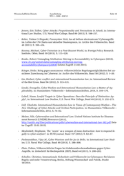 Wissenschaftliche Dienste Ausarbeitung Seite 19 WD 2 - 3000 - 038/15 - Jensen, Eric Talbot, Cyber Attacks: Proportionality and Precautions in Attack, in: Interna- tional Law Studies, U.S. Naval War College, Band 89 (2013), S. 198–217. - Keber, Tobias O./Roguski, Przemysław Nick, Ius ad bellum electronicum? Cyberangriffe im Lichte der UN-Charta und aktueller Staatenpraxis, in: Archiv des Völkerrechts, Band 49 (2011), S. 399–434. - Kenney, Michael, Cyber-Terrorism in a Post-Stuxnet World, in: Foreign Policy Research Institute, Orbis, Band 59 (2015), S. 111–128. - Knake, Robert, Untangling Attribution: Moving to Accountability in Cyberspace (2010), www.cfr.org/united-states/untangling-attribution-moving- accountabilitycyberspace/p22630 (letzter Zugriff: 23.02.2015). - Krieger, Heike, Krieg gegen anonymous: völkerrechtliche Regelungsmöglichkeiten bei un- sicherer Zurechnung im Cyberwar, in: Archiv des Völkerrechts, Band 50 (2012), S. 1–20. - Lin, Herbert, Cyber conflict and international humanitarian law, in: International Review of the Red Cross, Band 94 (2012), S. 515–531. - Linaki, Evangelia, Cyber Warfare and International Humanitarian Law: a Matter of Ap- plicability, in: Humanitäres Völkerrecht – Informationsschriften, 2014, S. 169–176. - Lubell, Noam, Lawful Targets in Cyber Operations: Does the Principle of Distinction Ap- ply?, in: International Law Studies, U.S. Naval War College, Band 89 (2013), S. 252–275. - Lülf, Charlotte, International Humanitarian Law in Times of Contemporary Warfare – The New Challenge of Cyber Attacks and Civilian Participation, in: Humanitäres Völkerrecht – Informationsschriften, 2013, S. 74–82. - Melzer, Nils, Cyberwarfare and International Law, United Nations Institute for Disarma- ment Research (UNIDIR) Resources (2011), http://unidir.org/files/publications/pdfs/cyberwarfare-and-international-law-382.pdf (letz- ter Zugriff: 23.02.2015). - Meulenbelt, Stephanie, The "worm" as a weapon of mass destruction: how to respond le- gally to cyber-warfare?, in: RUSI journal, Band 157 (2012), S. 62–67. - Padmanabhan, Vijay M., Cyber Warriors and the Jus in Bello, in: International Law Stud- ies, U.S. Naval War College, Band 89 (2013), S. 288–308. - Plate, Tobias, Völkerrechtliche Fragen bei Gefahrenabwehrmaßnahmen gegen Cyber- Angriffe, in: Zeitschrift für Rechtspolitik (ZRP), Band 44 (2011), S. 200–202. - Schaller, Christian, Internationale Sicherheit und Völkerrecht im Cyberspace: für klarere Regeln und mehr Verantwortung, Berlin, Stiftung Wissenschaft und Politik, Studie 18/2014.