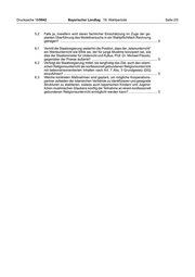 Drucksache 18/9942 Bayerischer Landtag 18. Wahlperiode Seite 2/5 5.2 Falls ja, inwiefern wird deren fachlicher Einschätzung im Zuge der ge- planten Überführung des Modellversuchs in ein Wahlpflichtfach Rechnung getragen? ............................................................................................................ 5 6.1 Vertritt die Staatsregierung weiterhin die Position, dass der „Islamunterricht“ ein Werteunterricht wie Ethik sei, der für junge Muslime konzipiert sei, wie dies der Staatsminister für Unterricht und Kultus, Prof. Dr. Michael Piazolo, gegenüber der Presse äußerte? ......................................................................... 5 6.2 Verfolgt die Staatsregierung mittel- bis langfristig das Ziel, auch den islami- schen Religionsunterricht als konfessionell gebundenen Religionsunterricht mit bekenntnisorientierten Inhalten nach Art. 7 Abs. 3 Grundgesetz (GG) einzuführen? ........................................................................................................ 5 6.3 Welche konkreten Maßnahmen sind geplant, um mögliche Kooperations- partner aufseiten der islamischen Verbände zu identifizieren und geeignete Strukturen zu etablieren, sodass auch bayerischen Kindern und Jugend- lichen muslimischen Glaubens künftig die Teilnahme an einem konfessionell gebundenen Religionsunterricht ermöglicht werden kann?................................. 5
