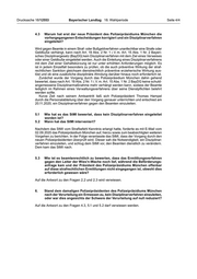 Drucksache 18/12553 Bayerischer Landtag 18. Wahlperiode Seite 2/4 5.3 Wie ist es beamtenrechtlich zu bewerten, dass das Ermittlungsverfahren gegen den Leiter der Wies’n-Wache noch lief, während die Beförderungs- anfrage kam und der Präsident des Polizeipräsidiums München offenbar auf diese strafrechtlichen Ermittlungen nicht eingegangen ist, obwohl dies erforderlich gewesen wäre?................................................................................. 4 6. Stand dem damaligen Polizeipräsidenten des Polizeipräsidiums München nach der Verurteilung ein Ermessen zu, kein Disziplinarverfahren einzuleiten, oder war dies angesichts der Schwere der Verurteilung auf null reduziert?........ 4 Antwort des Staatsministeriums des Innern, für Sport und Integration im Vernehmen mit dem Polizeipräsidium München vom 25.01.2021 1.1 Wann (bitte genaues Datum) wurde die Anfrage der Beförderung des Leiters der Wies’n-Wache durch das Staatsministerium des Innern, für Sport und Integration (StMI) an das Polizeipräsidium München gerichtet? Das Staatsministerium des Innern, für Sport und Integration (StMI) fragte beim Polizei- präsidium München am 18.02.2020 routinemäßig ab, ob Beförderungshindernisse be- stehen. 1.2 Wann hat das Polizeipräsidium München das StMI um die Stellenhebung der Leitung der Polizeiinspektion Sendling von A 13 auf A 14/15 gebeten? Der Vorschlag der Hebung unter anderem des Dienstpostens des Inspektionsleiters der Polizeiinspektion 15 (Sendling) nach A 14/15 im Rahmen des Doppelhaushalts 2019/2020 wurde mit Meldung vom 18.09.2019 an das StMI übermittelt. 1.3 Wurden auch andere Leitungen von Inspektionen im Münchner Gebiet „ge- hoben“ oder betraf die Stellenhebung alleine die Leitung der Inspektion Sendling (entspricht dem damaligen Leiter der Wies’n-Wache)? Die Entscheidung über die Hebung von Dienstposten obliegt dem StMI als oberster Dienstbehörde und orientiert sich u. a. an der Personalstärke und der Einsatzbelastung der Dienststelle sowie am Bevölkerungszuwachs im Zuständigkeitsbereich der jeweili- gen Dienststelle. Entsprechend der relevanten Parameter wurden auch andere Dienstposten von Dienststellenleitern im Bereich des Polizeipräsidiums München angehoben. 2.1 Wie wurde bei der Bitte nach der Stellenhebung das laufende Ermittlungs- verfahren gegen den Leiter der Wies’n-Wache durch das StMI bewertet? Dienstpostenhebungen erfolgen nicht aufgrund des Dienstposteninhabers. 2.2 Wie hat das Polizeipräsidium München auf die Beförderungsanfrage durch das StMI genau reagiert? Das Polizeipräsidium München teilte dem StMI am 26.03.2020 mit, dass aus Sicht des Verbandes die Beförderung erfolgen könne.