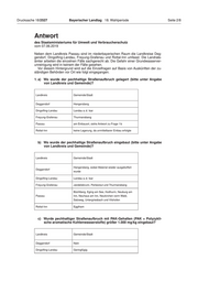 Drucksache 18/2527 Bayerischer Landtag 18. Wahlperiode Seite 6/8 Landkreis Rottal-Inn: Es erfolgte keine Lagerung vor Ort, der Einbau entsprach nach Aktenlage den gelten- den Vorschriften. 3. a) Wie viel pechhaltiger Straßenaufbruch befindet sich noch an den jeweiligen Orten, soweit nicht ordnungsgemäß vorgegangen wurde? Landkreis Freyung-Grafenau: (siehe auch Antwort zu Frage 2 c) – Perlesreut: Beseitigungsverfahren läuft. – Thurmansbang: ordnungsgemäßer Einbau läuft. Landkreis Passau: Derzeit wird von Gutachtern und dem WWA überprüft, ob und inwieweit der Einbau ord- nungsgemäß erfolgte. Nach dem aktuellen Kenntnisstand können in den betroffenen Fällen ordnungsgemäße Zustände hergestellt werden. Es lagert kein entsprechendes Material vor Ort. Landkreise Deggendorf, Dingolfing-Landau und Rottal-Inn: Jeweils Fehlanzeige; es wird kein weiterer Handlungsbedarf gesehen. b) Welchem Verursacher kann der Einbau dieses Materials jeweils zugeordnet werden? Das Material hat die Recyclingfirma verbaut. c) Aus welcher Quelle stammt jeweils der pechhaltige Straßenaufbruch? Als Quellen ist von verschiedenen Straßenbaumaßnahmen auszugehen. 4. a) Wie sind die jeweiligen Orte gesichert? Landkreis Deggendorf: Fehlanzeige (siehe Antwort zu Frage 1 b und 2 b). Landkreis Dingolfing-Landau: Der Einbau erfolgte unter befestigter Asphalt- oder Betonfläche. Landkreis Freyung-Grafenau: – Perlesreut: Sicherung durch sofortige umfängliche Planenabdeckung. – Thurmansbang: Sicherung durch Lage unterhalb überdachter Halle und derzeitige abschließende Versiegelungsmaßnahmen des Hallenbodens. Landkreis Passau: Eine spezielle Sicherung der Orte ist nach derzeitigem Kenntnisstand nicht erforder- lich. Falls bauliche Mängel festgestellt wurden, wurden die Bauherren per Bescheid zur Nachbesserung verpflichtet. Landkreis Rottal-Inn: – Die Basis und die Randbereiche der Verfüllung wurden mit wasserdichter Folie ab- gedichtet. Ferner beschränkte sich der Einbau auf den später mit einer Poduktions- halle überbauten Bereich. – Errichtung von Drainagesystemen zur Vermeidung einer Durchströmung der asphalt haltigen Fundationsschicht durch Hangzugwasser sowie zur Unterbindung eines Eintrags von Oberflächen-/Niederschlagswasser aus dem Umgriff der Halle.