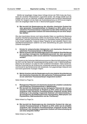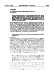 Drucksache 18/9427 Bayerischer Landtag 18. Wahlperiode Seite 2/5 4. Ökologisches Potenzial und chemischer Zustand der erheblich veränderten und künstlichen Flusswasserkörper in Mittelfranken........................................... 4 a) Wie beurteilt die Staatsregierung das ökologische Potenzial der oben ge- nannten Flusswasserkörper im Vergleich zu 2015, sofern sie als erheblich veränderte oder künstliche Flusswasserkörper eingestuft wurden (bitte Auflistung in das jeweilige insgesamte Potenzial und Unterscheidung in die biologischen Qualitätskomponenten Phytoplankton, Makrophyten und Phytobenthos, Makrozoobenthos und der Fischfauna)?...................................... 4 b) Wie beurteilt die Staatsregierung den chemischen Zustand der oben ge- nannten Flusswasserkörper im Vergleich zu 2015, sofern sie als erheblich veränderte oder künstliche Flusswasserkörper eingestuft wurden (bitte Auflistung in den jeweiligen insgesamten Zustand und Unterscheidung mit und ohne ubiquitäre Stoffe)?................................................................................ 4 5. Gründe für entsprechendes ökologisches Potenzial und chemischen Zu- stand der erheblich veränderten und künstlichen Flusswasserkörper in Mittelfranken......................................................................................................... 5 a) Welche Ursachen sieht die Staatsregierung für eine mögliche Verschlechterung der jeweiligen biologischen Qualitätskomponenten der oben genannten Flusswasserkörper, sofern sie als erheblich veränderte oder künstliche Flusswasserkörper eingestuft wurden?............................................................... 5 b) Welche Ursachen sieht die Staatsregierung für eine mögliche Verschlechterung des chemischen Zustandes der oben genannten Flusswasserkörper, sofern sie als erheblich veränderte oder künstliche Flusswasserkörper eingestuft wurden? ............................................................................................................... 5 6. Bilanz der Maßnahmenumsetzung...................................................................... 5 a) Wurde im Laufe der 2019 erfolgten Bestandsaufnahme eine Bilanz zur Um- setzung der Maßnahmen zur Verbesserung der Gewässergüte erstellt?........... 5 b) Falls ja, wie setzt sich der Umsetzungsstand der Maßnahmen bei den oben genannten Flusswasserkörpern aktuell zusammen (bitte Aufteilung zwischen den Kategorien Wasserabfluss und -entnahmen, Durchgängig- keit, Gewässerstruktur, Abwasser und Beratung in der Landwirtschaft)?........... 5 7. Hindernisse bei der Maßnahmenumsetzung....................................................... 5 a) Inwiefern stockte die Maßnahmenumsetzung in Mittelfranken aufgrund der fehlenden Bereitstellung von Flächen, die z. B. zur Renaturierung von Ge- wässern oder zur Verbesserung der Durchgängigkeit notwendig sind?.............. 5 b) Welche Maßnahmen plant die Staatsregierung zur Reduzierung von Stoff- einträgen aus der Landwirtschaft in Mittelfranken, abgesehen von den Vorgaben des Volksbegehrens Artenvielfalt „Rettet die Bienen!“, des ent- sprechenden Begleitgesetzes und weiteren bereits angelaufenen Förder- programmen, wie z. B. im Kulturlandschaftsprogramm (KULAP)?...................... 5